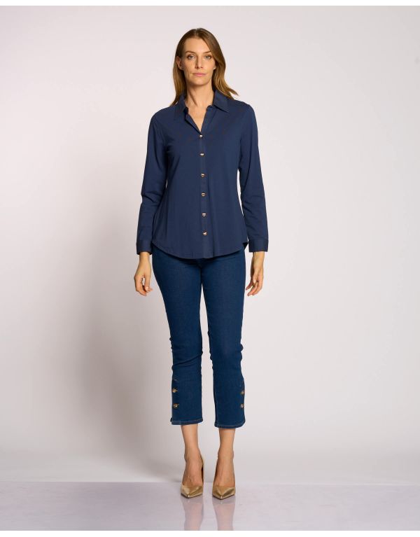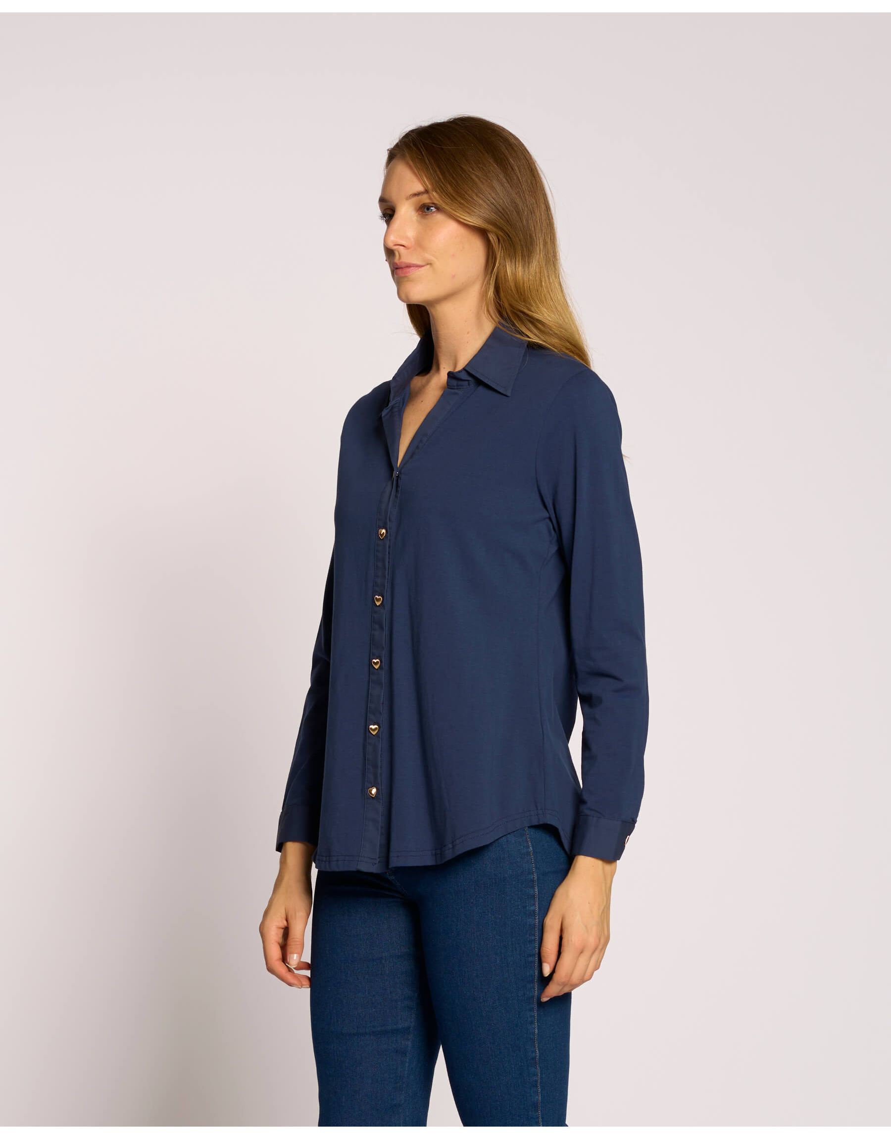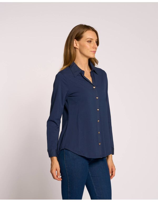 Camicia basica in cotone elasticizzato con bottoni a cuore