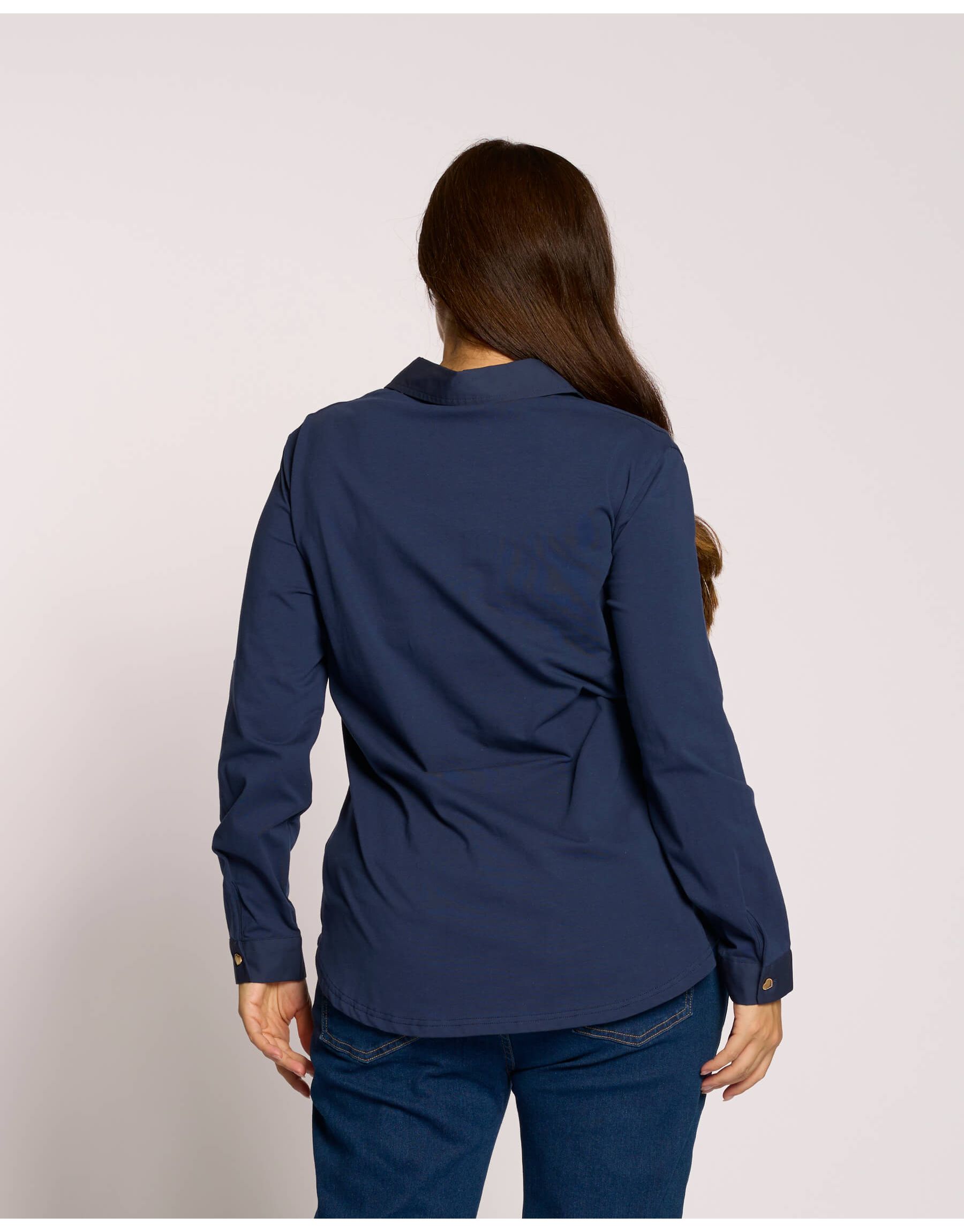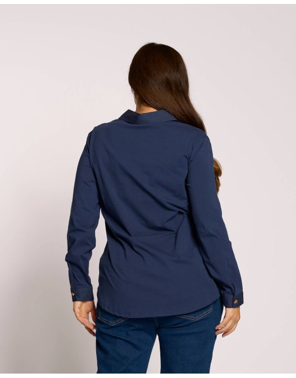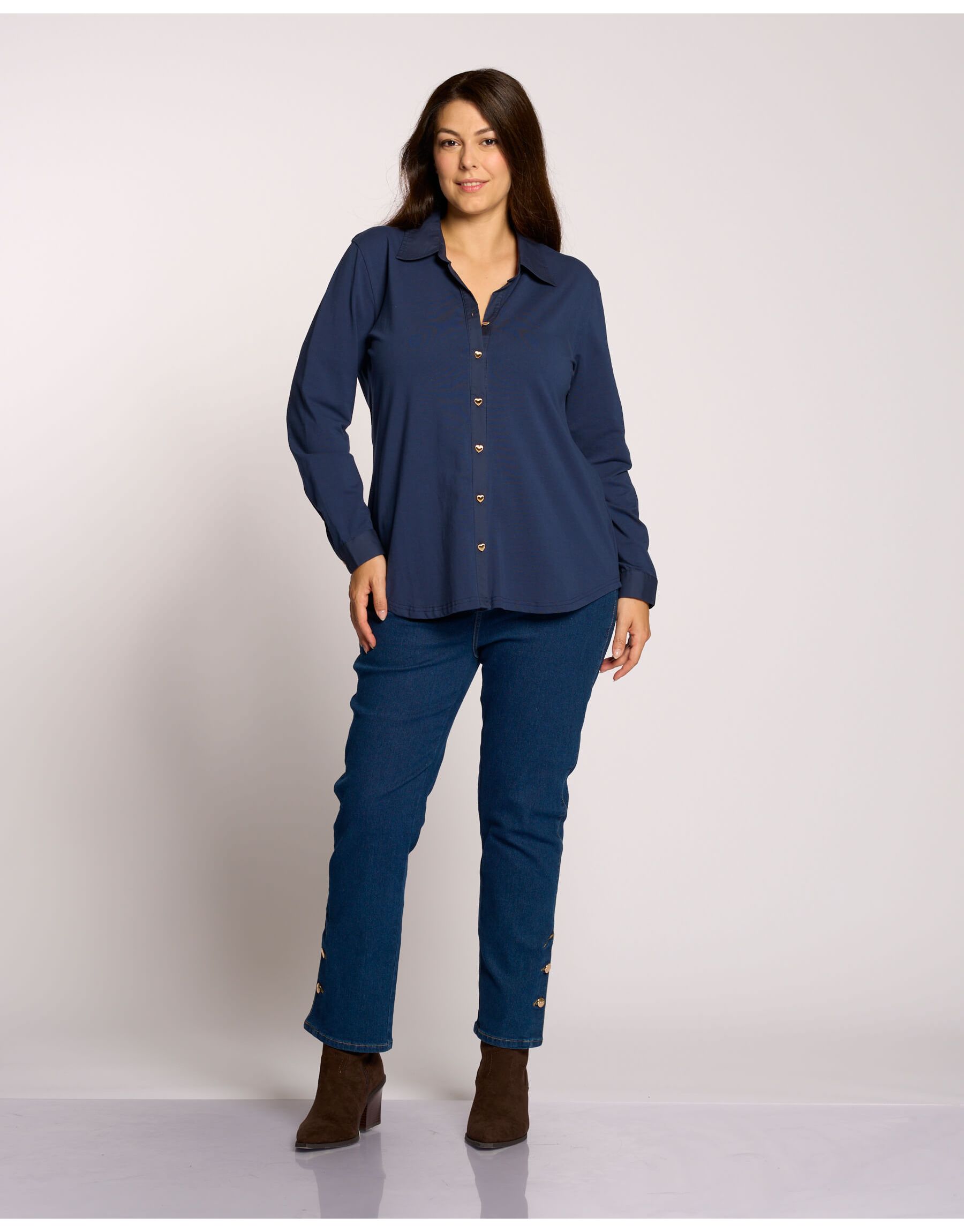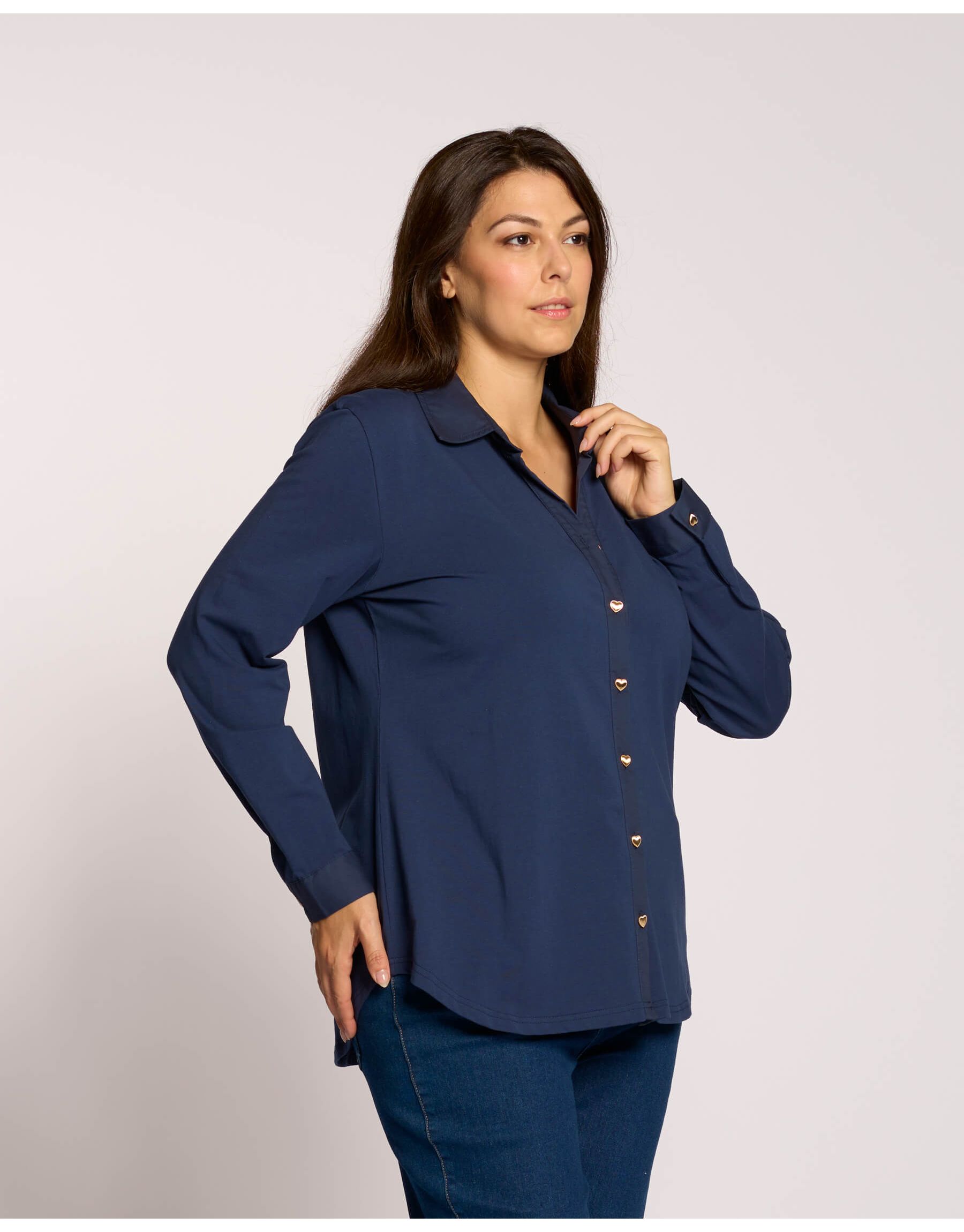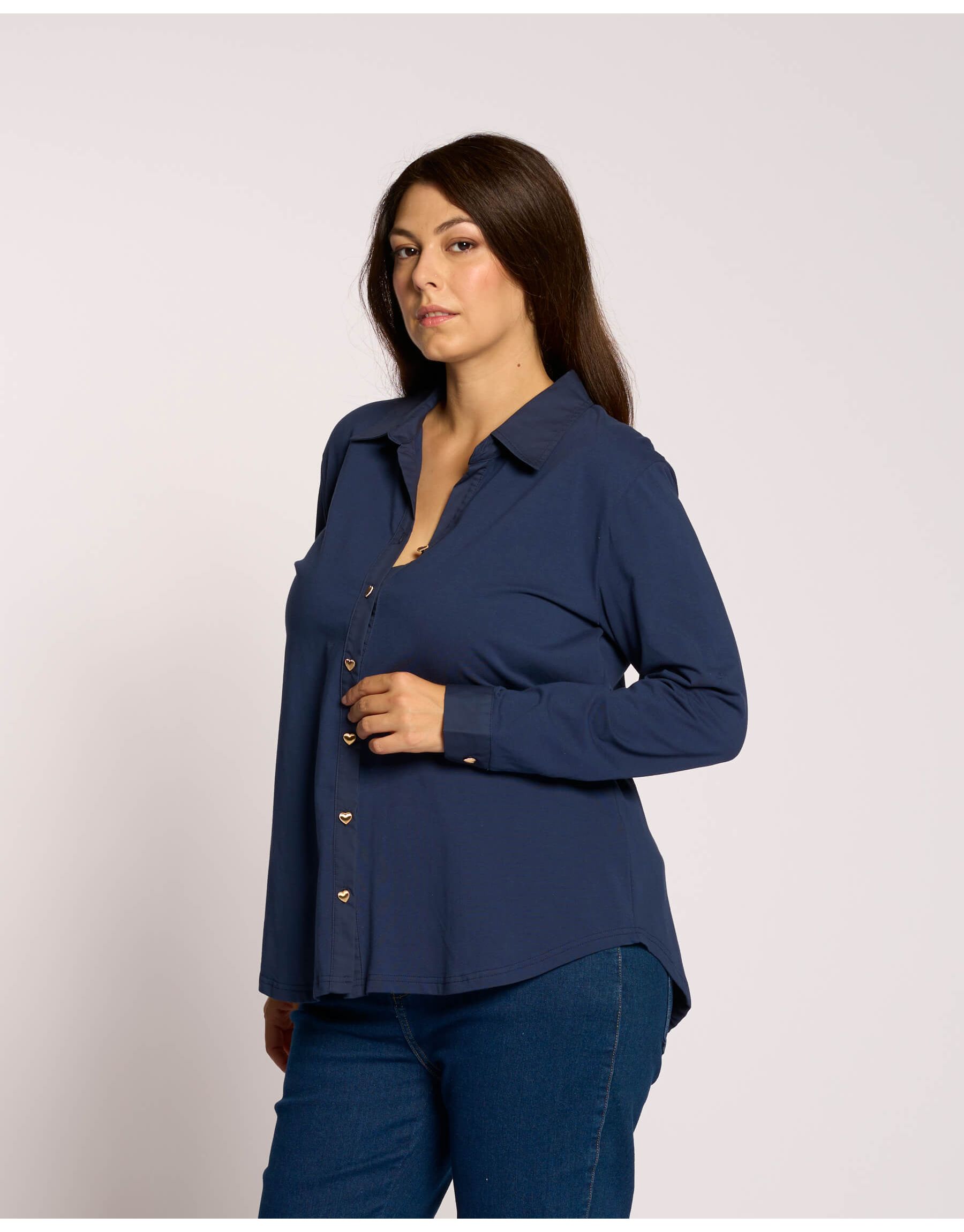 Camicia basica in cotone elasticizzato con bottoni a cuore