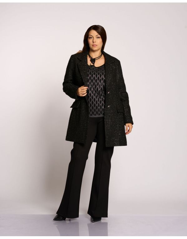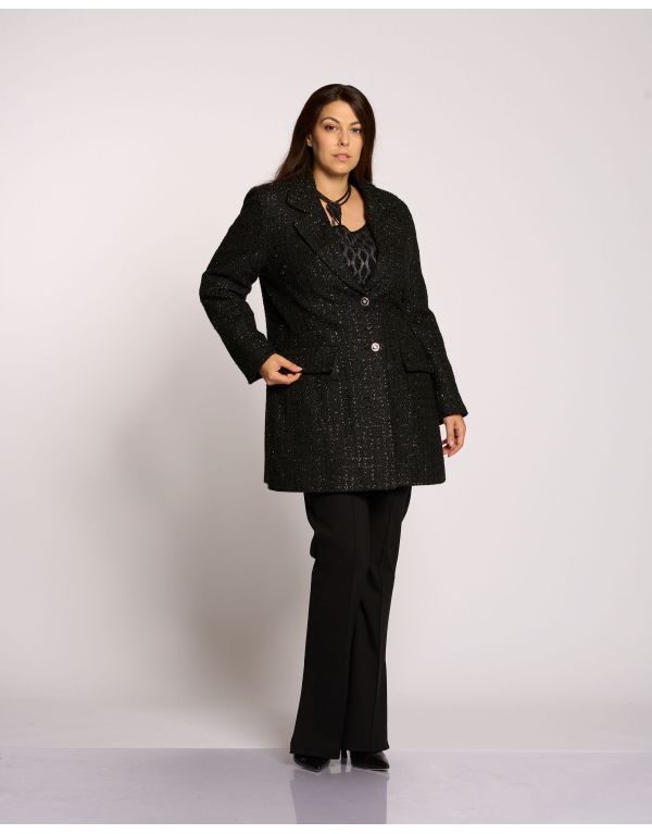 Cappotto in tessuto bouclé foderato con collo revers, tasche e bottoni