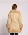 Cappotto in ecomontone con fondo stondato e chiusura con alamaro e ganci