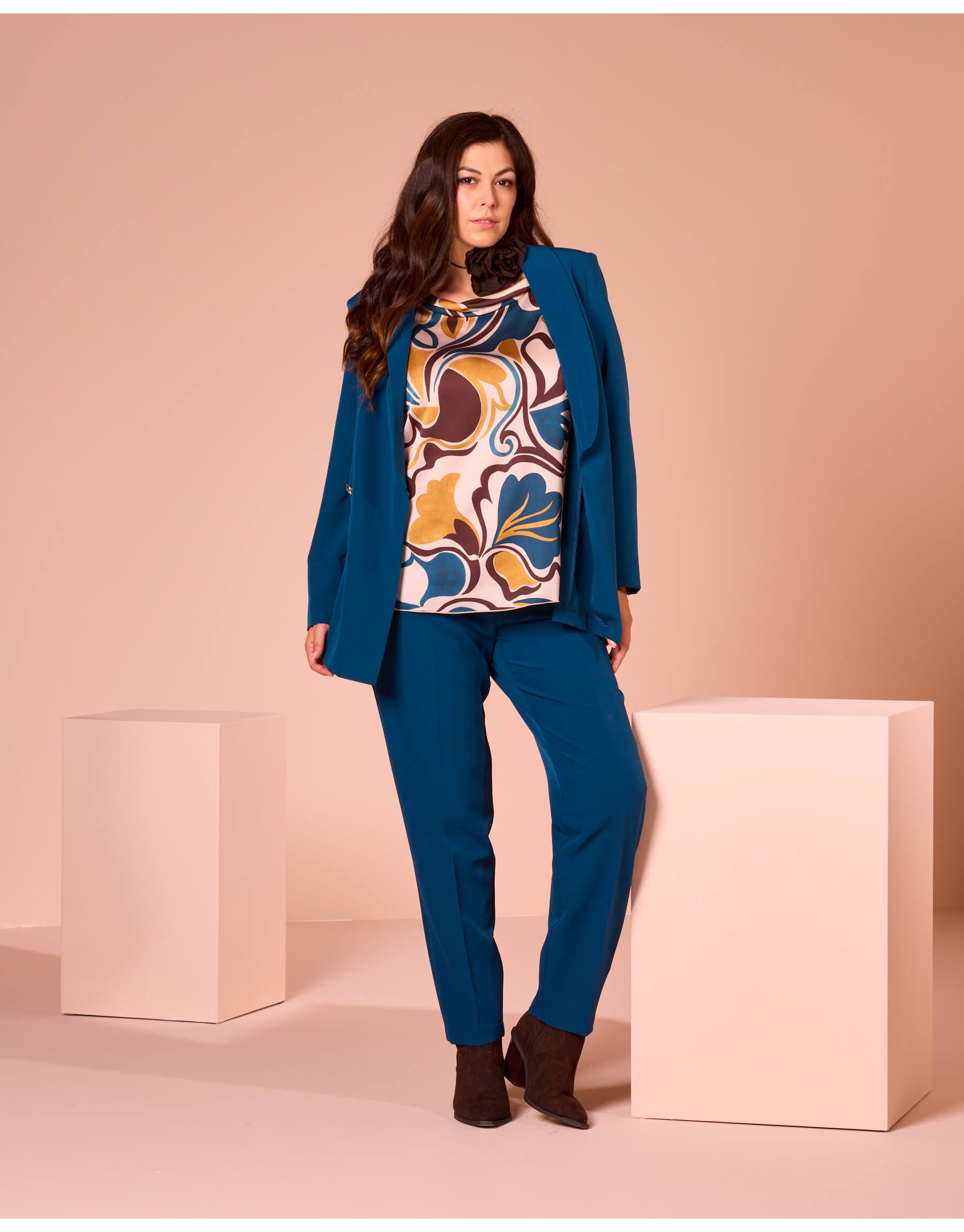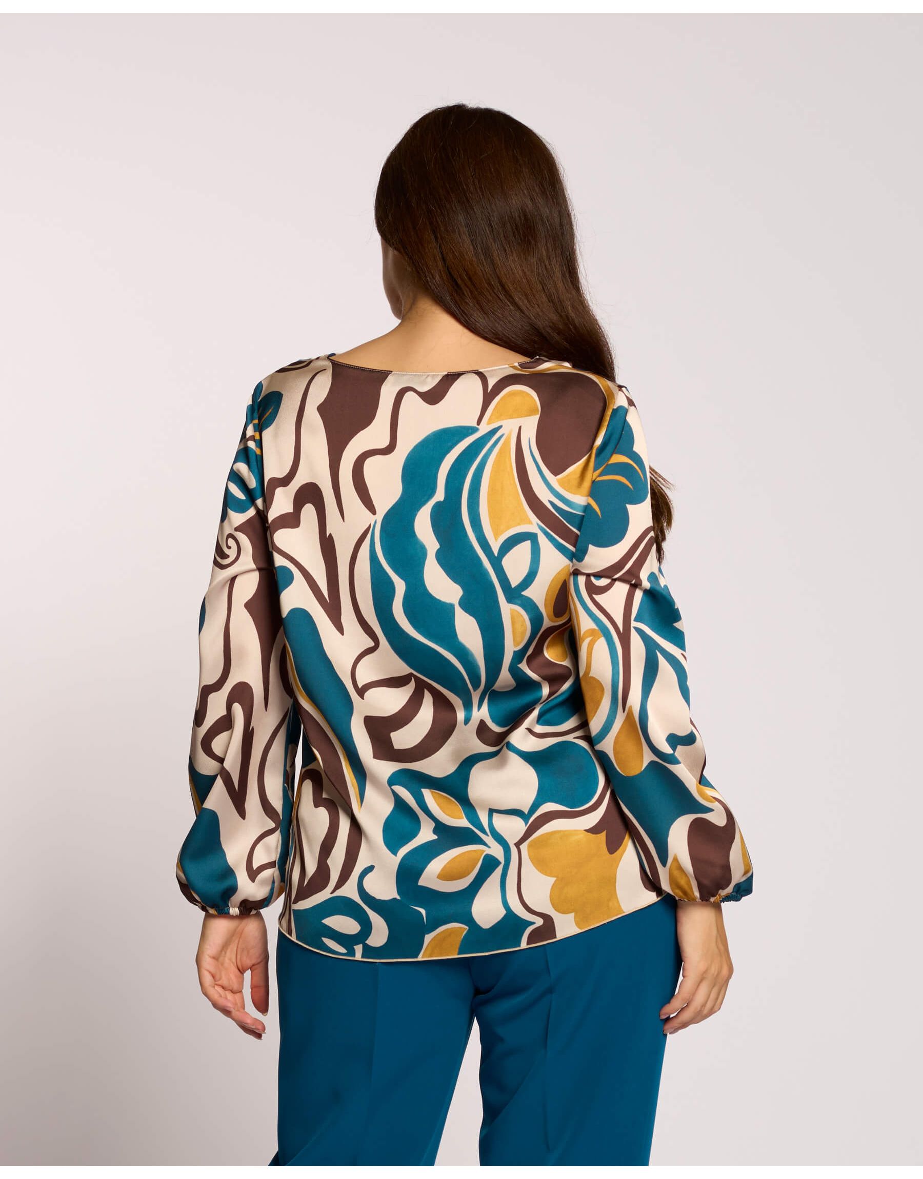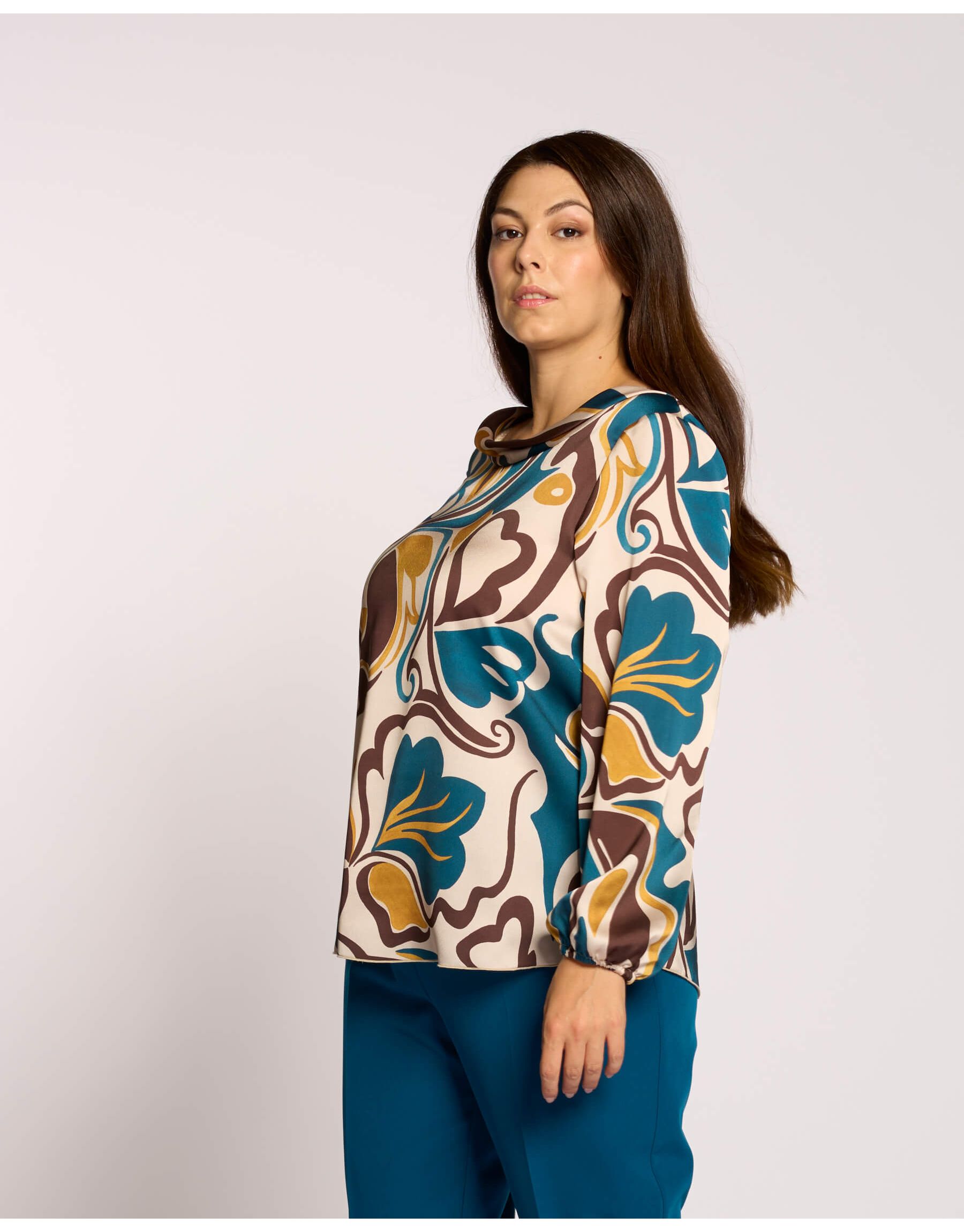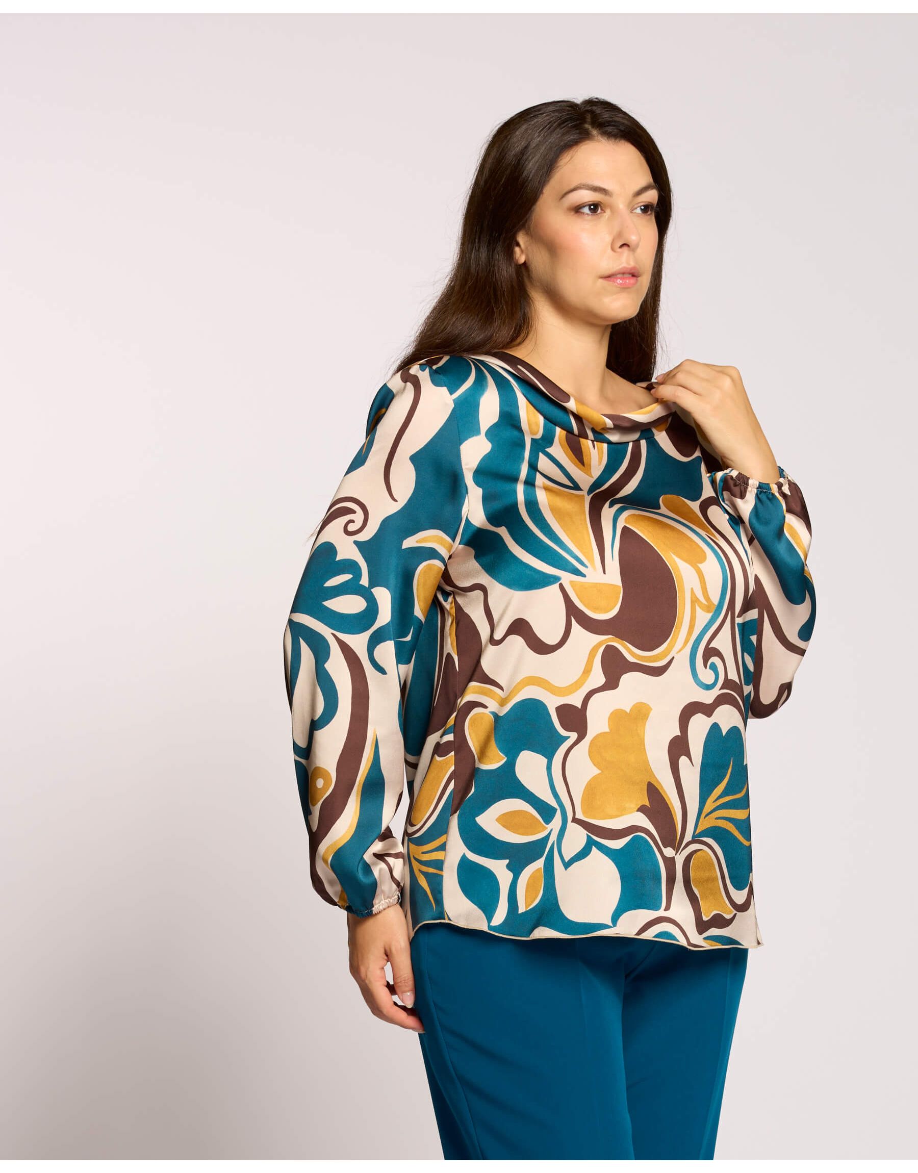 Distinguiti con stile indossando questa casacca lunga in raso fantasia, un capo che unisce eleganza e comfort. Il raffinato collo ad anello drappeggia morbidamente, aggiungendo un tocco di sofisticata fluidità al design. Perfetta per ogni occasione, questa casacca è ideale per creare un look ricercato e di grande impatto visivo.