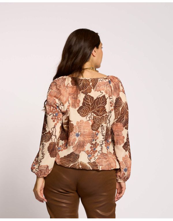 Casacca in tripla georgette fantasia con spacchi sulle maniche raglan ed elastico in vita