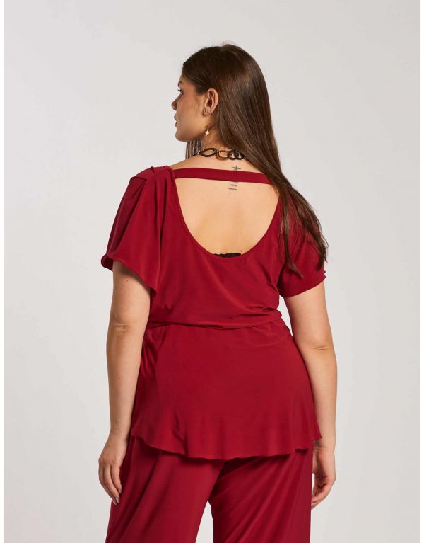 Casacca in jersey con pieghe sulle spalle, cinturina regolabile in vita con anello e laccio posteriore