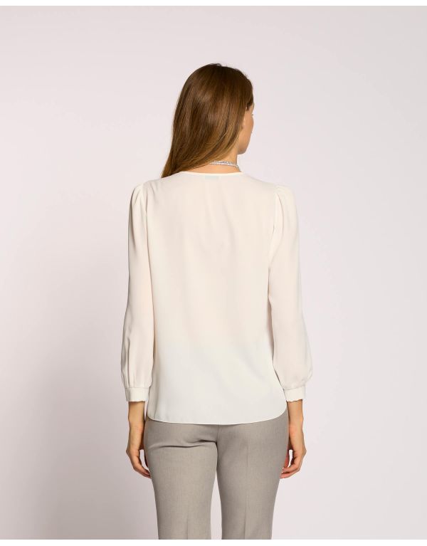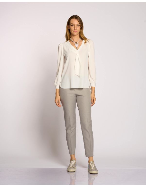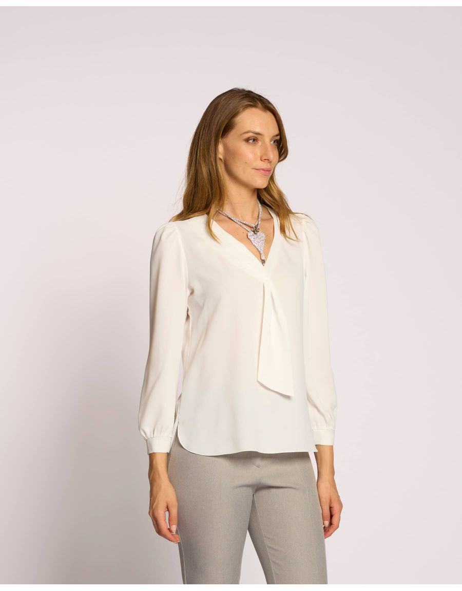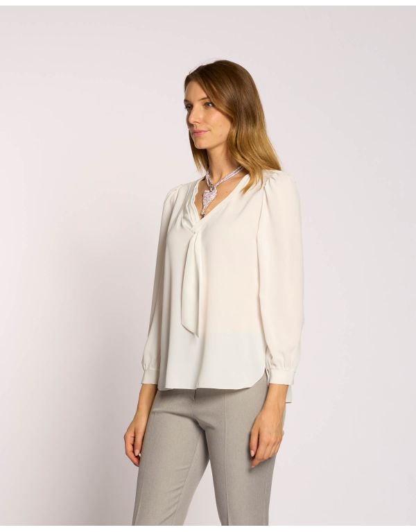 Casacca in tessuto setificato con scollo a V e sciarpina asimmetrica