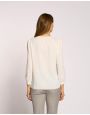 Rifletti la tua luce con questa casacca in tessuto setificato, un capo che unisce eleganza e comfort. Lo scollo a V, arricchito da un'asimmetrica sciarpina, aggiunge un tocco di raffinatezza e movimento, perfetto per un look sofisticato e moderno.