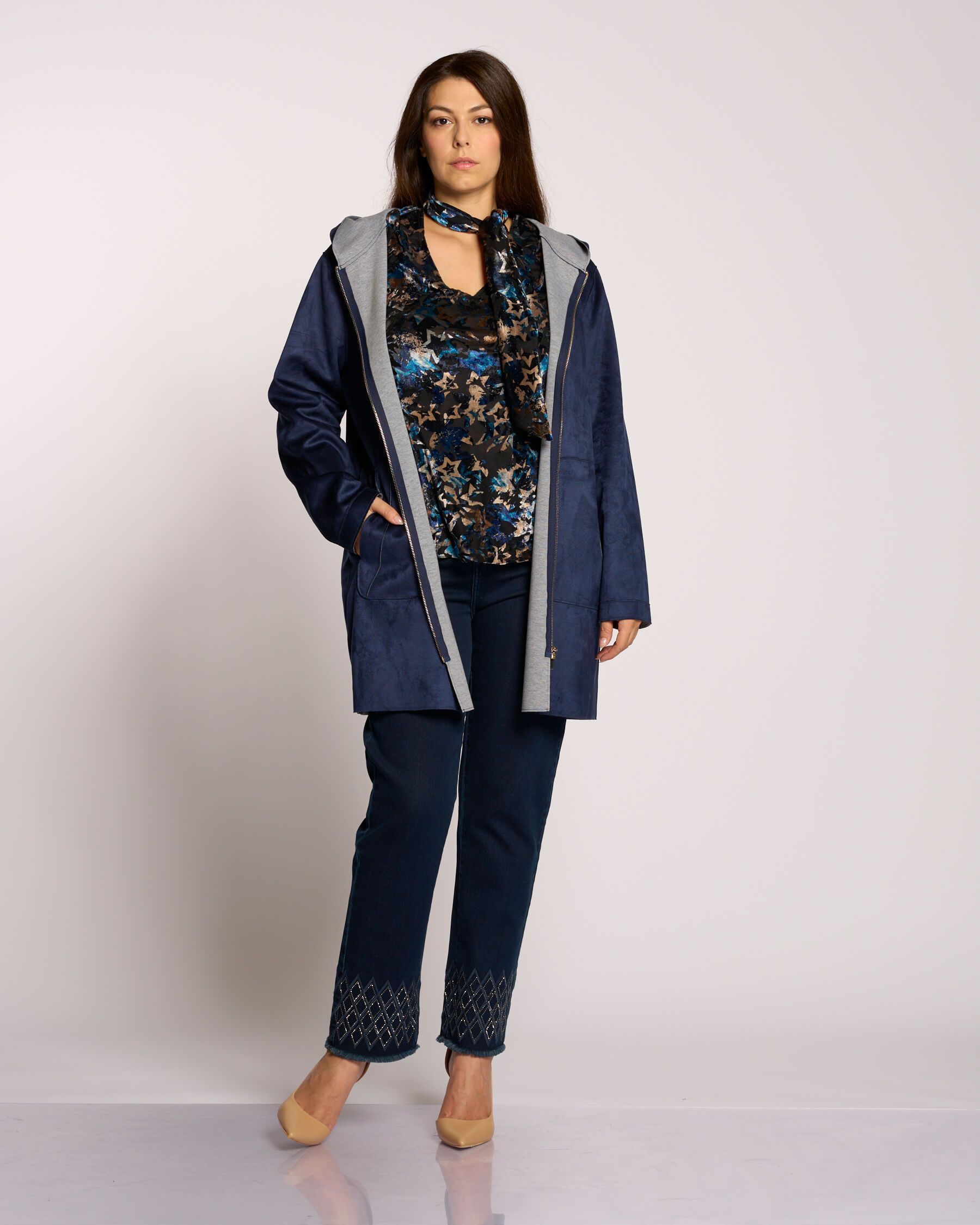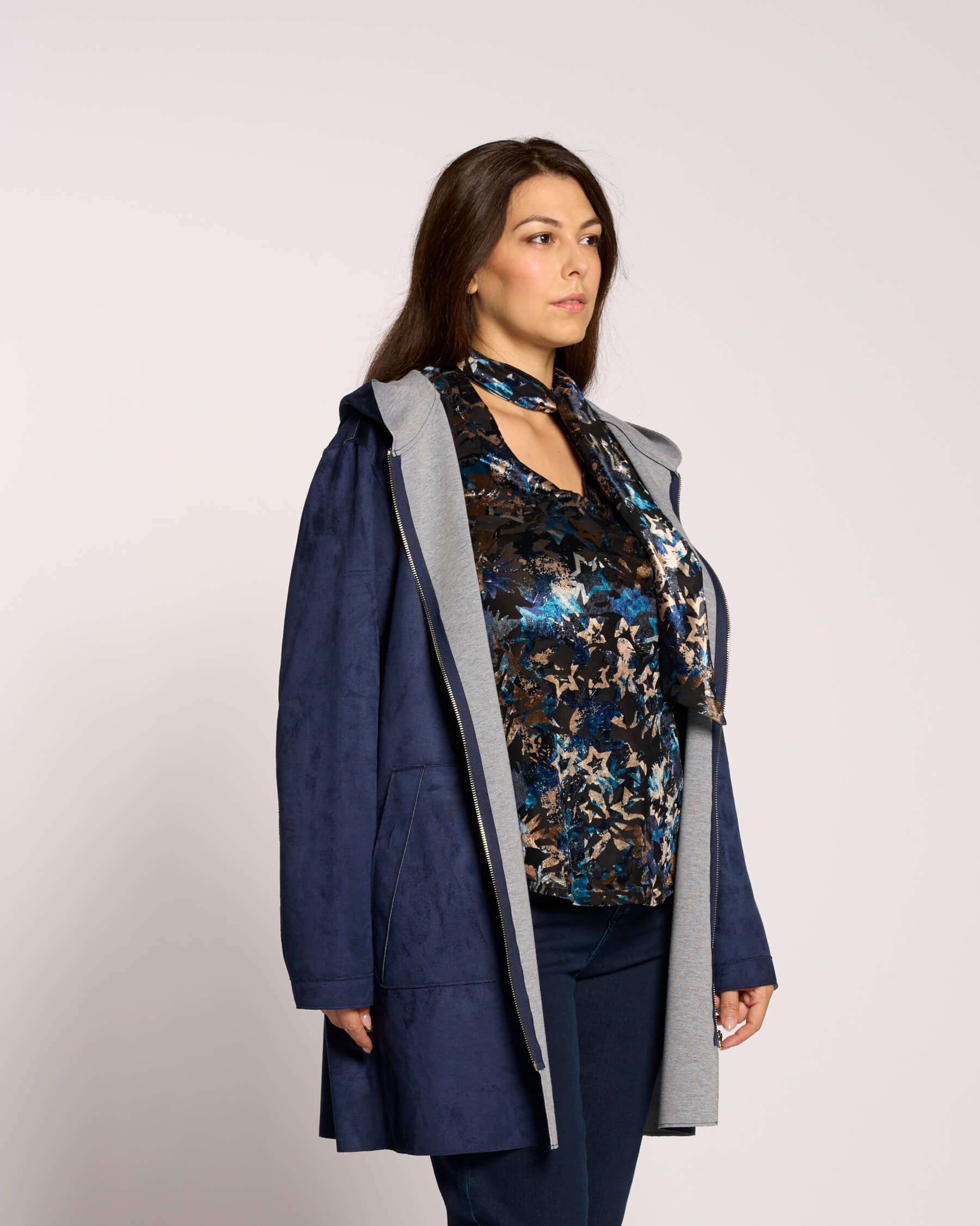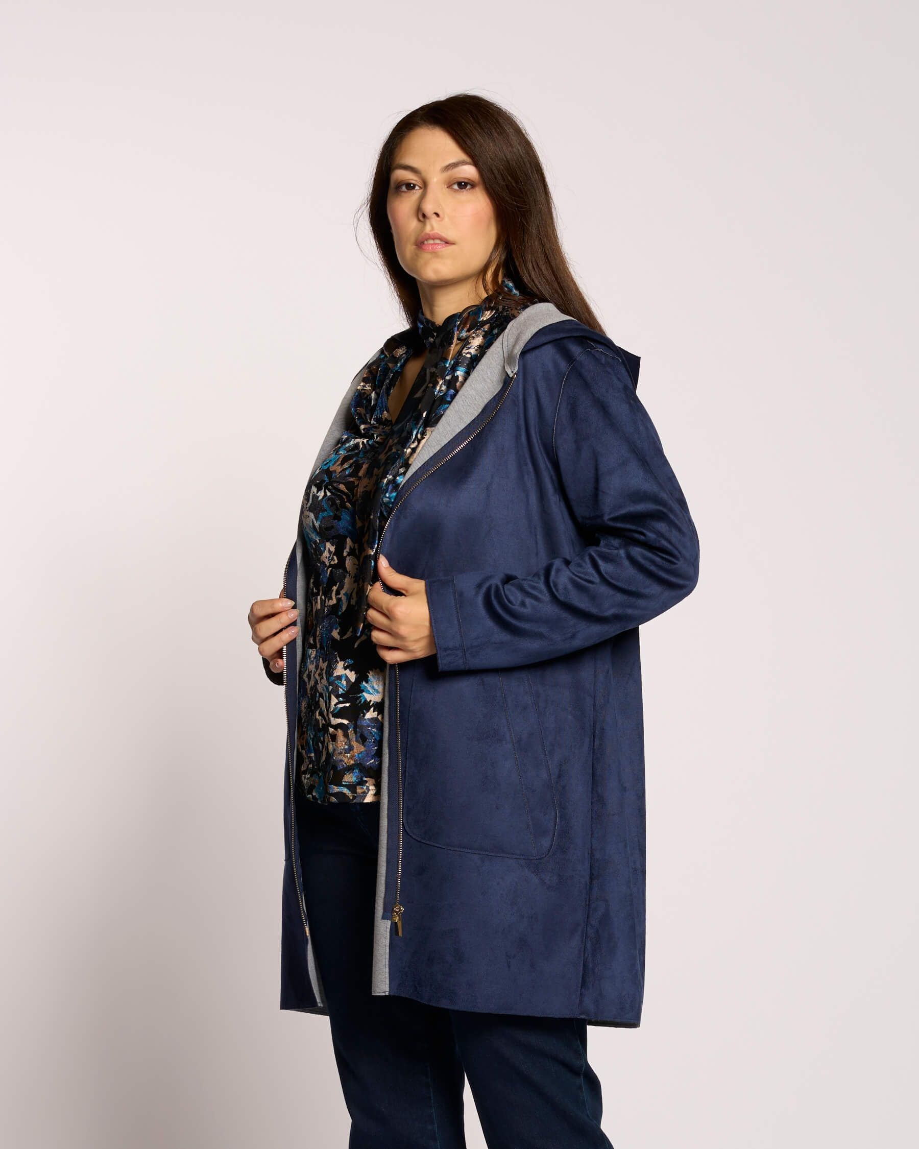 Spolverino doppiato con zip e cappuccio curvy