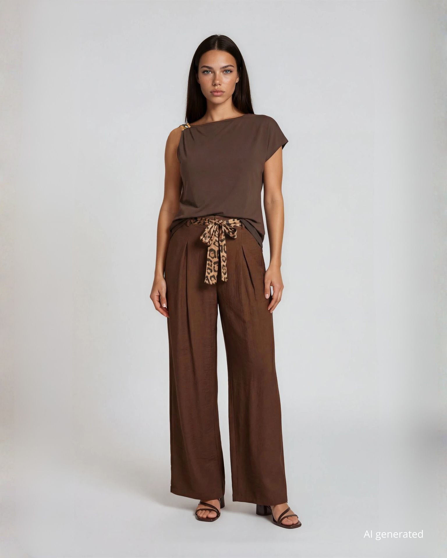 T-shirt asimmetrica in cotone con dettaglio nodo sulla spalla cioccolato