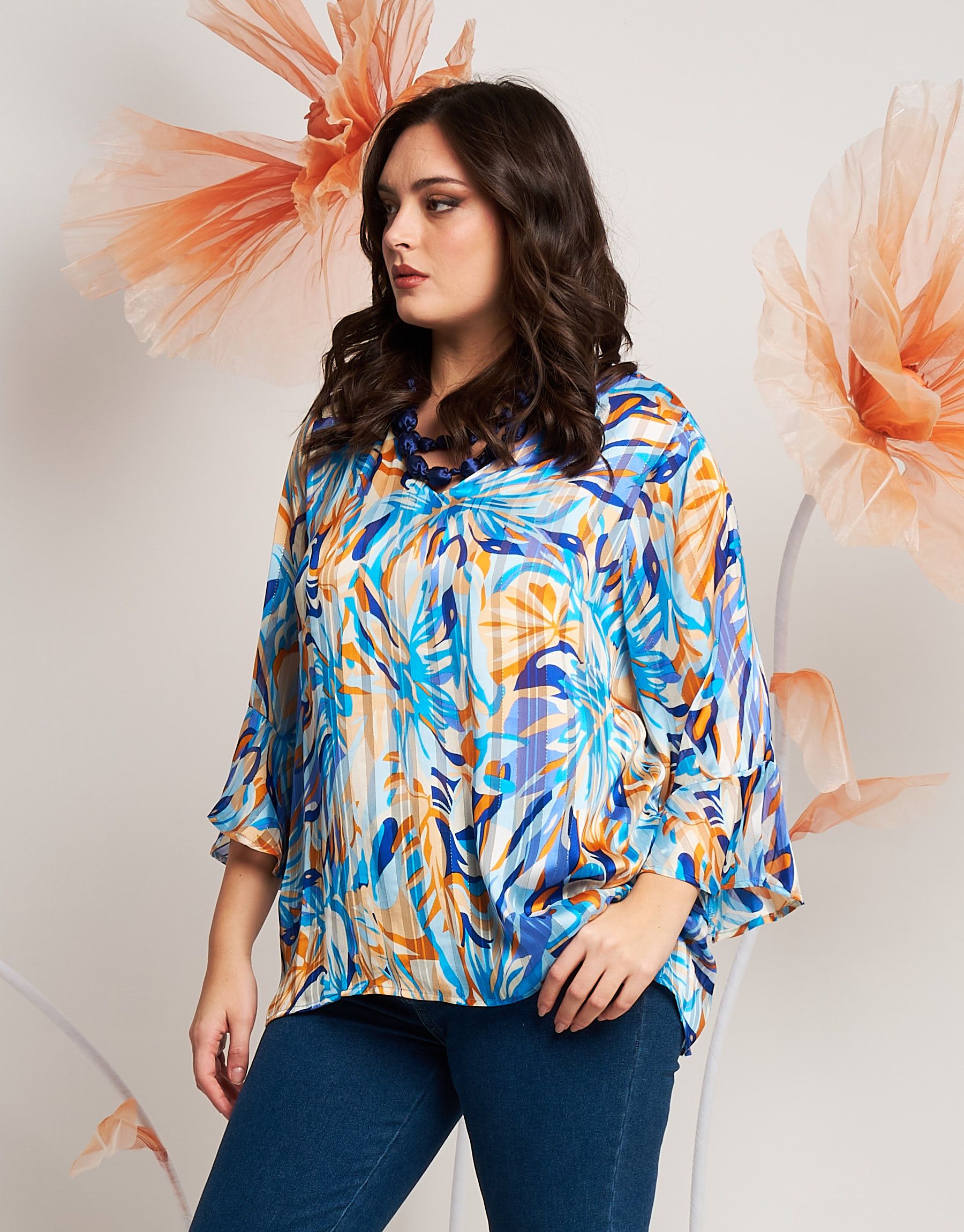 Casacca in georgette con scollo a V e volant curvy