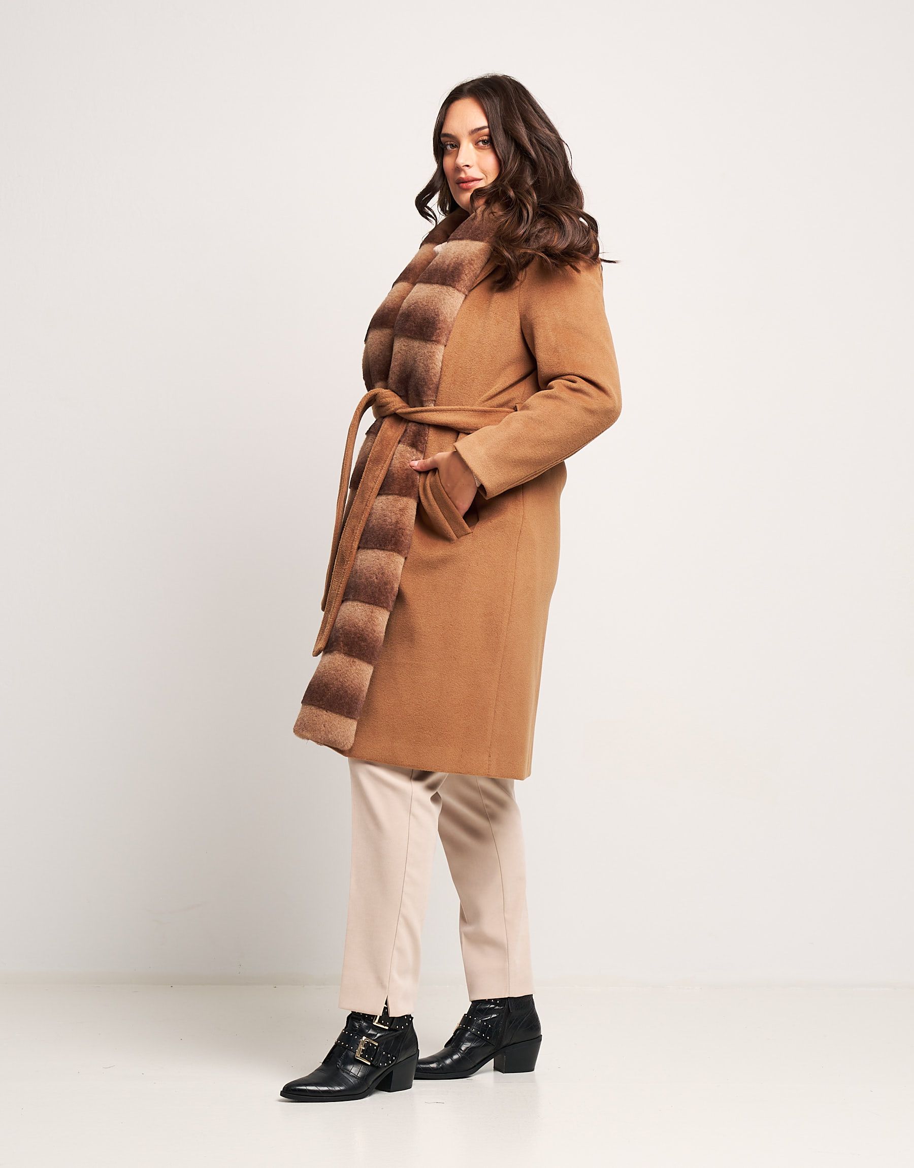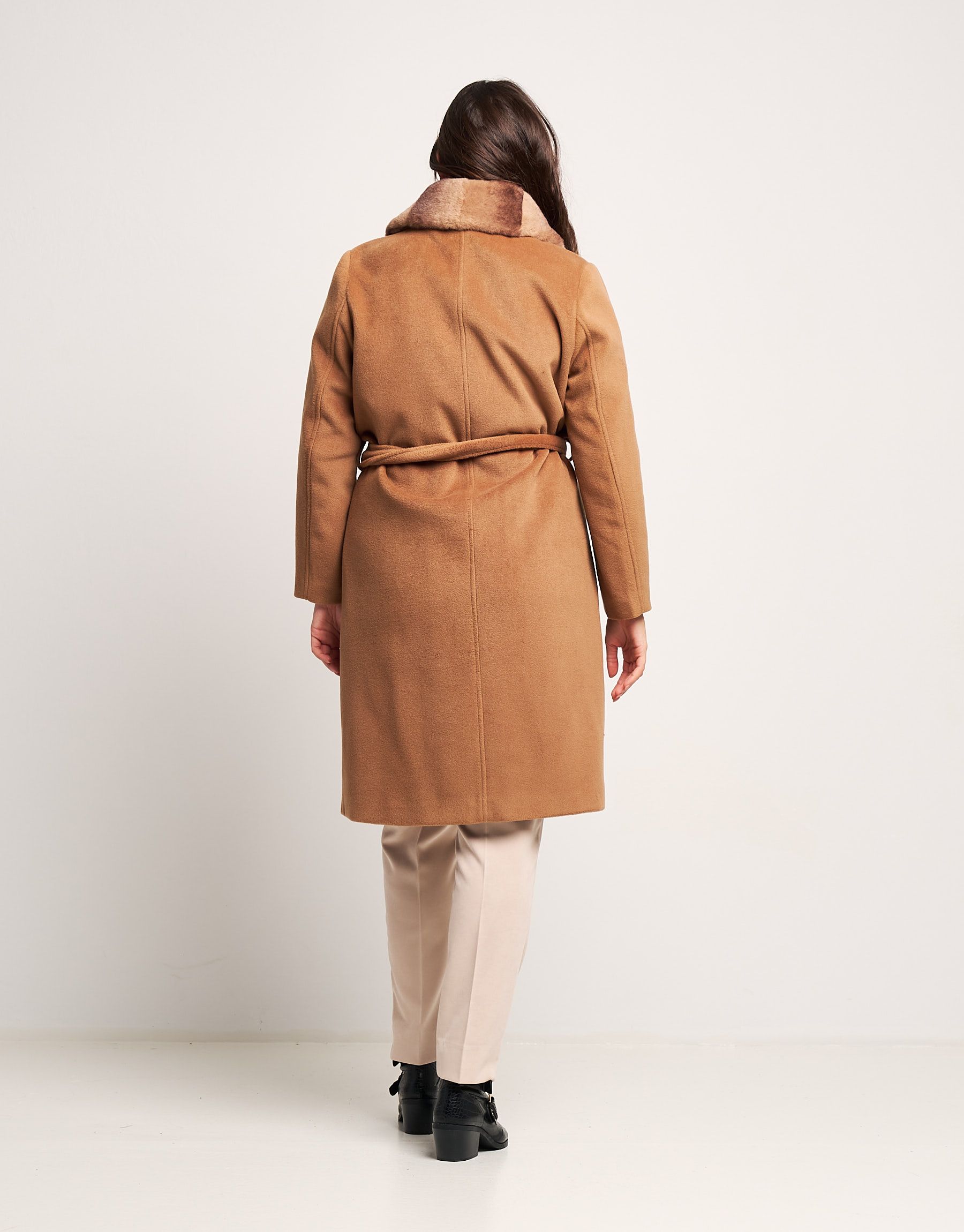 Cappotto con bordura in ecopelliccia e cintura curvy