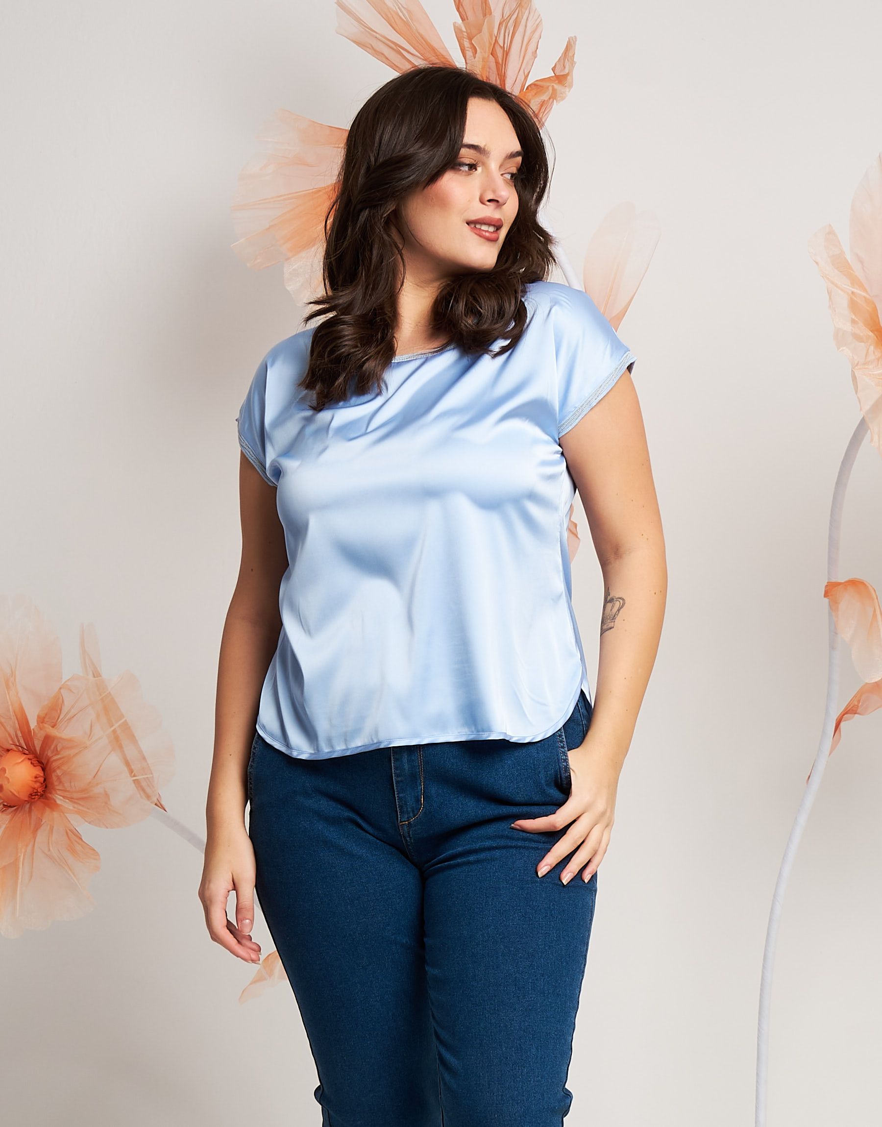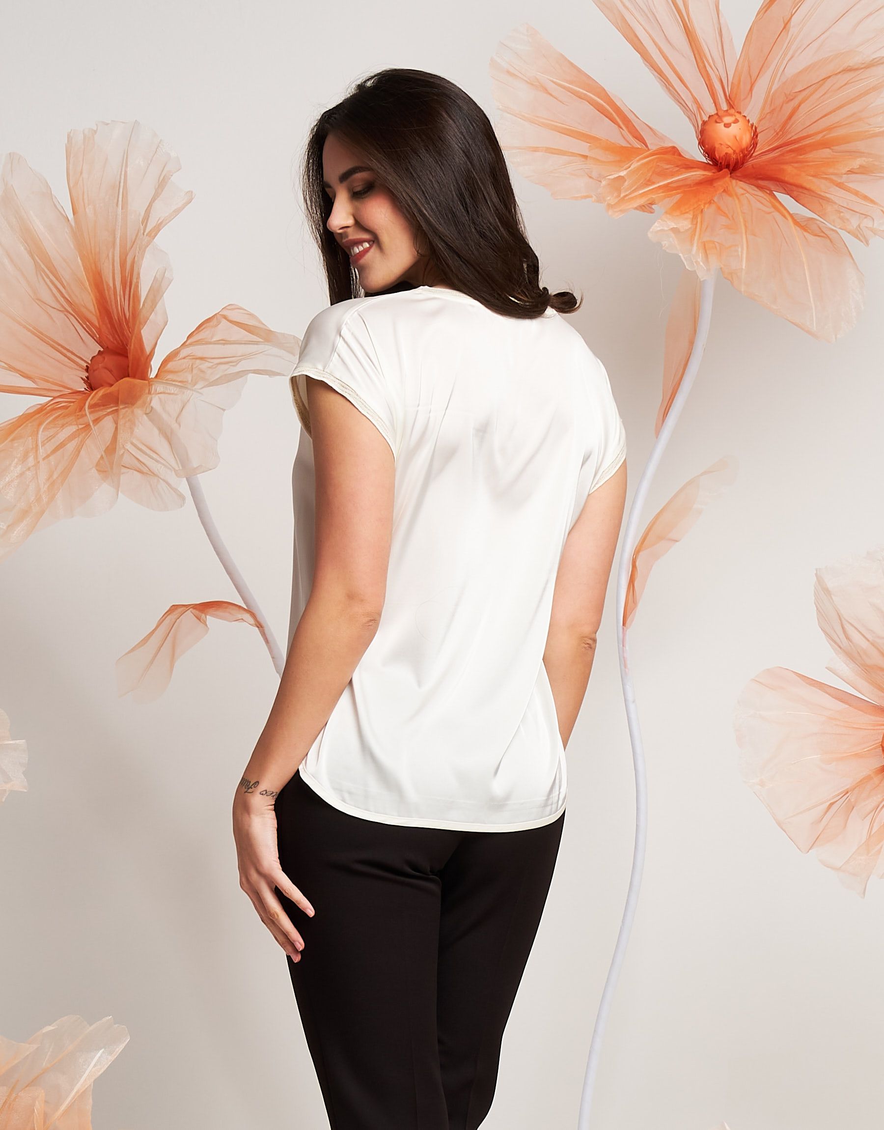 Casacca in raso con bordi in maglia