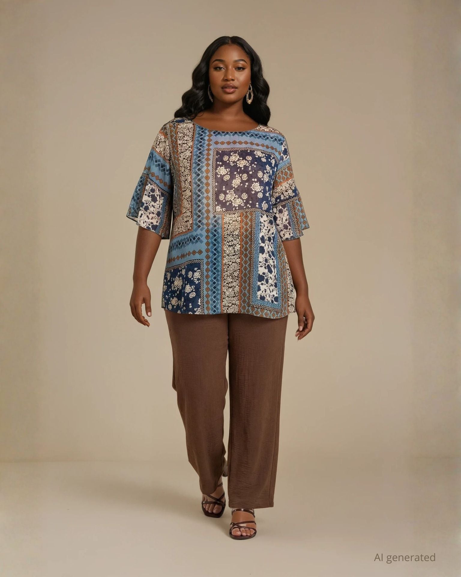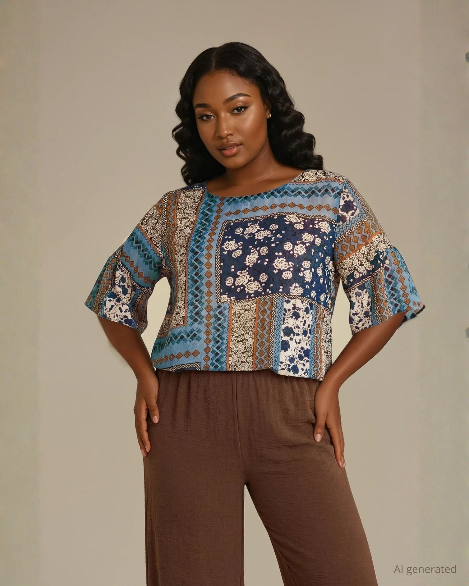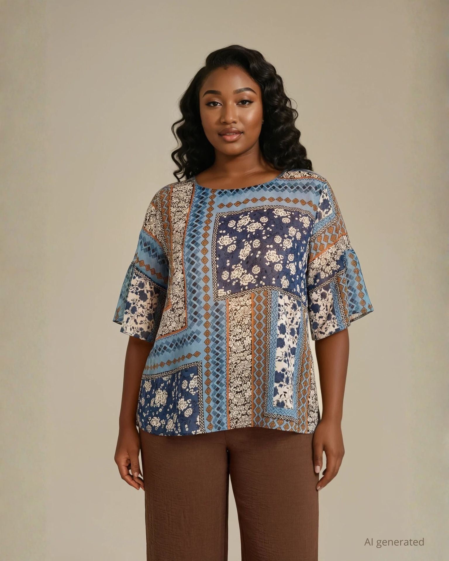 Questa casacca in georgette fantasia rappresenta un inno alla femminilità e alla creatività, dove la trasparenza velata del tessuto incontra il dinamismo di una fantasia ricercata. Il design si distingue per la sua linea fluida che scivola con grazia sul corpo, offrendo un gioco di volumi leggero e sofisticato. Il vero elemento distintivo risiede nei polsi, rifiniti da romantici volant che aggiungono un tocco di movimento e un’allure chic a ogni gesto. La georgette, con la sua mano setosa e la sua caduta impeccabile, rende questa blusa un capo prezioso da indossare, capace di catturare l'attenzione con discrezione e originalità. Grazie alla sua estetica vibrante, la casacca è il capo must per elevare qualsiasi look da giorno o da sera. In un contesto professionale, abbinata a un pantalone sartoriale a tinta unita, dona una nota di personalità e freschezza all'outfit da ufficio. Per un evento o un aperitivo speciale, rivela il suo lato più glamour se accostata a una gonna a tubino o a un denim: i volant ai polsi diventano il dettaglio di stile, completando l'immagine con un tocco di autentica distinzione e charme contemporaneo.