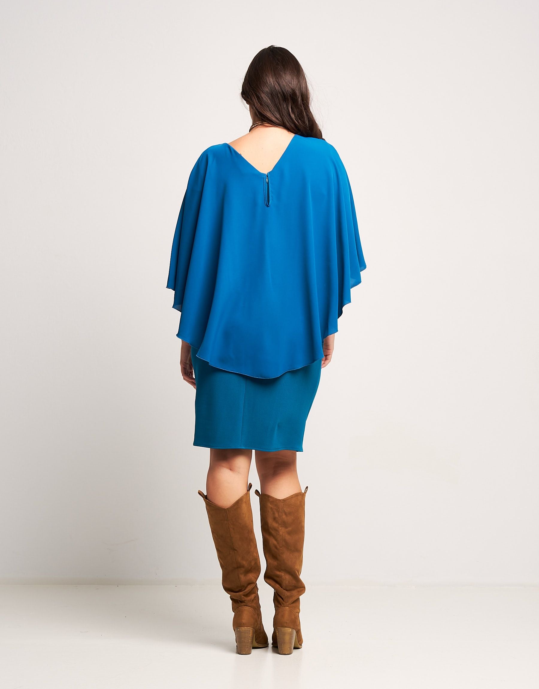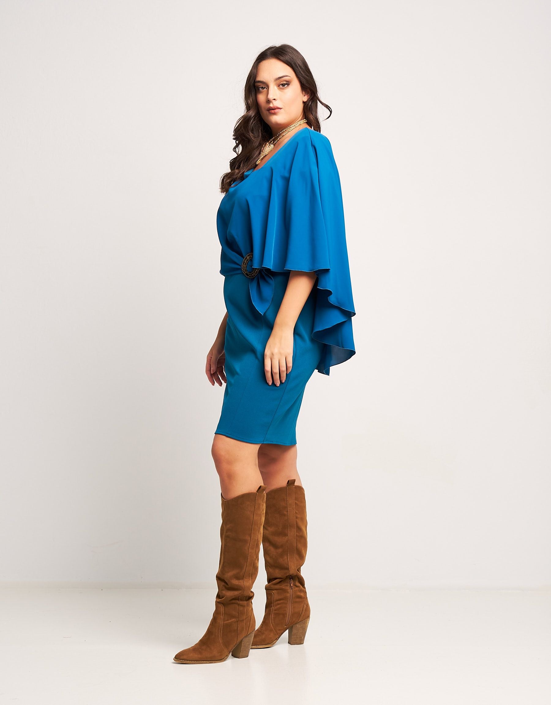 Tubino con mantellina e fibbia curvy