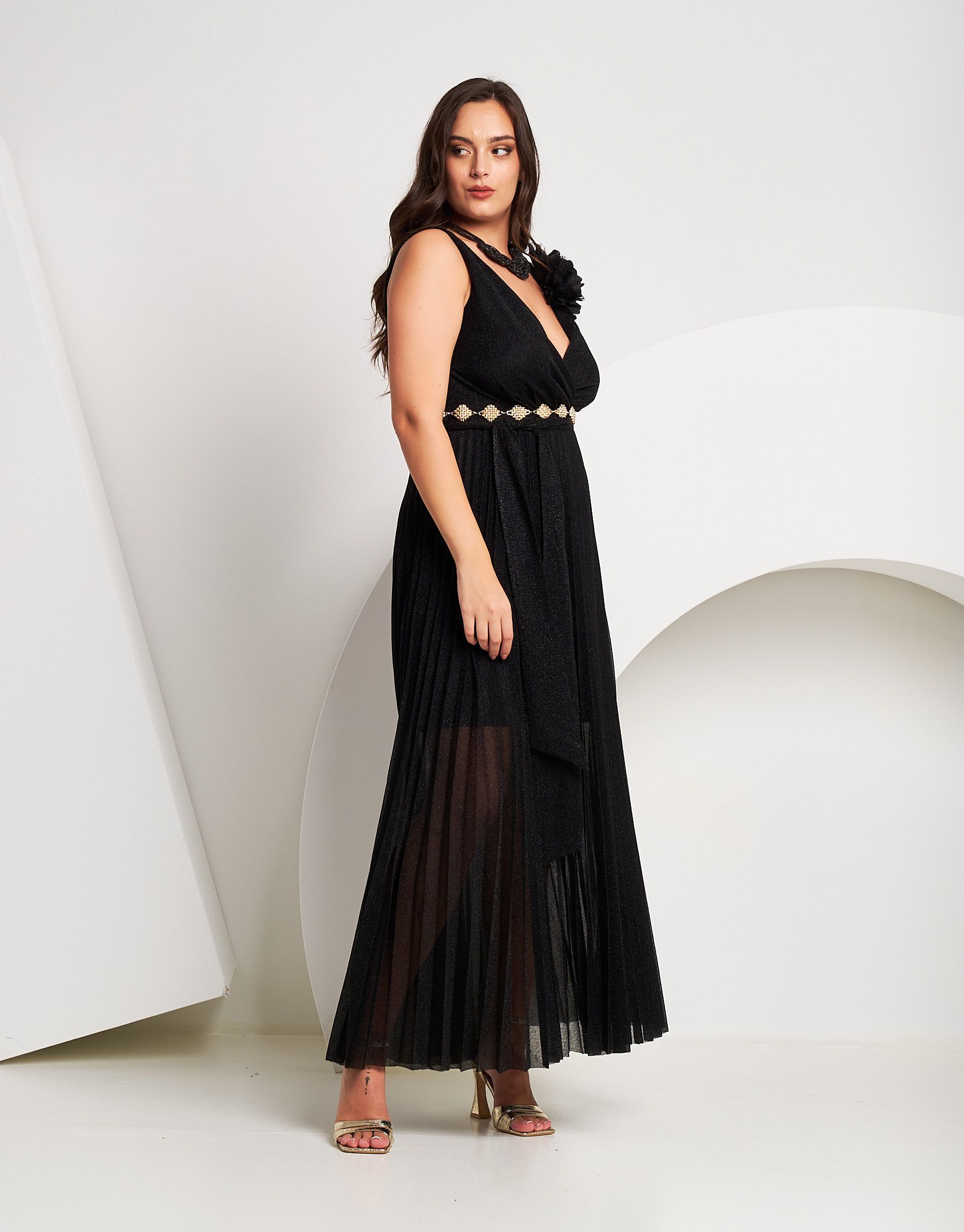 Vestito lungo in lurex con plissé