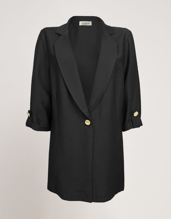 Giacca in viscosa con revers e risvolto ai polsi con linguetta e bottoni oro