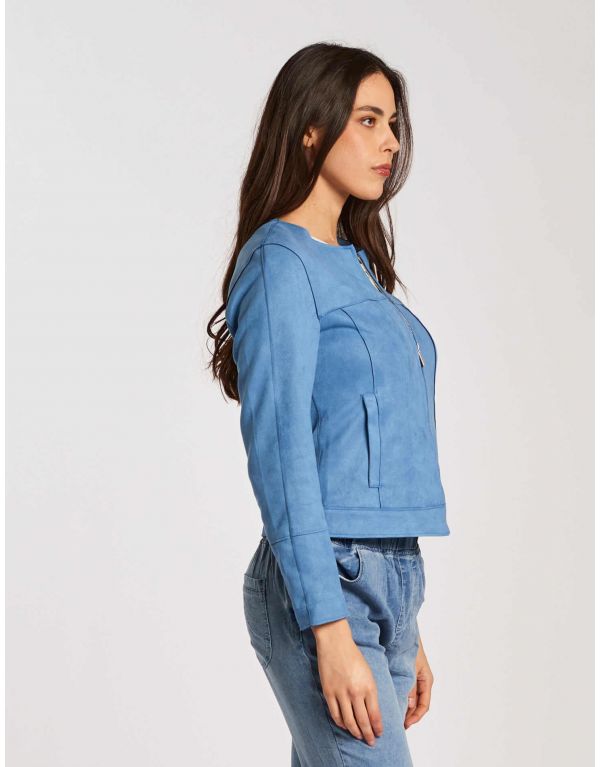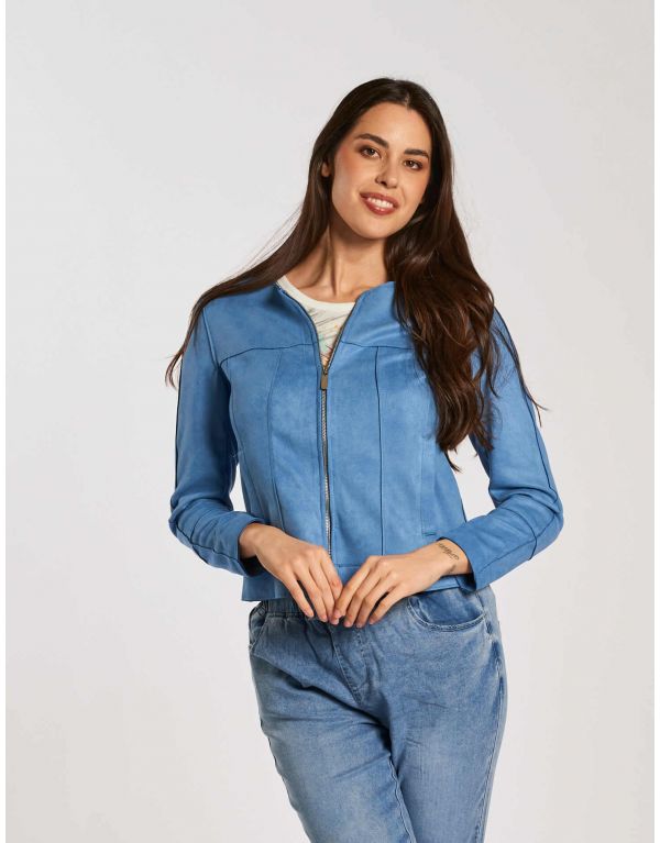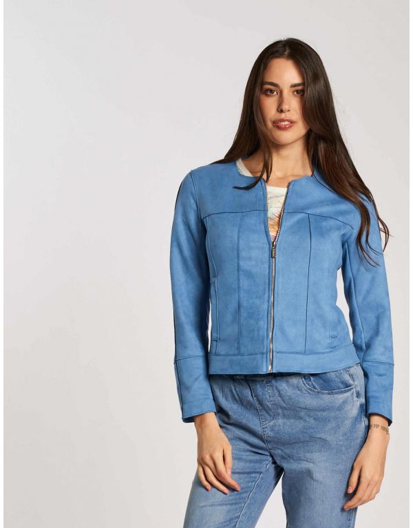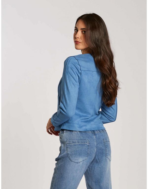 Il giubbino in ecosuede con zip è un capo versatile e di tendenza, ideale per le mezze stagioni. Si adatta a diversi look, dal casual all'elegante. La chiusura con zip lo rende pratico e funzionale.
