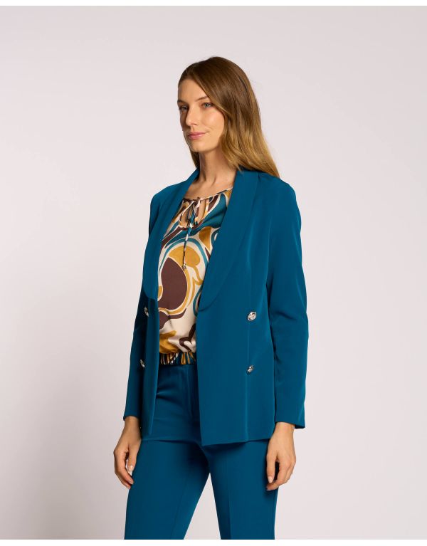 Giacca aperta in bistretch con collo a scialle e quattro bottoni ornamentali