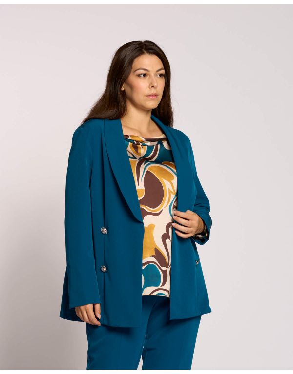 Giacca aperta in bistretch con collo a scialle e quattro bottoni ornamentali