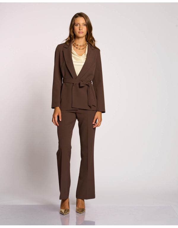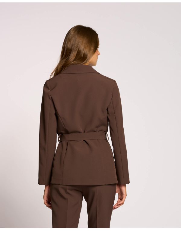 Questa giacca in bistretch offre una vestibilità comoda e modellante, perfetta per ogni occasione. Il design è definito da un elegante collo revers e una cintura che enfatizza la silhouette, rendendola un capo versatile e sofisticato.