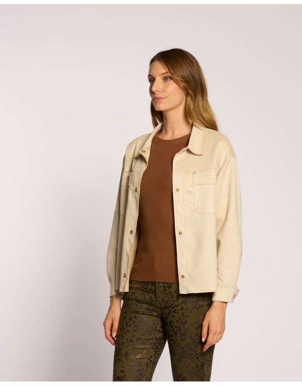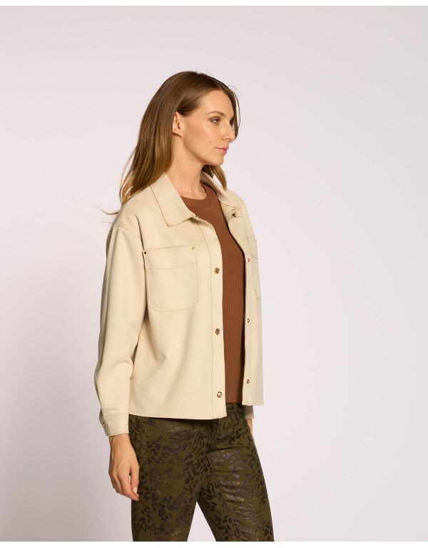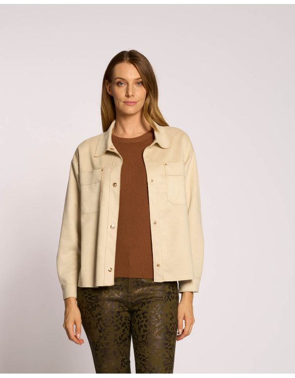 Giacchino in ecosuede con colletto, tasconi e bottoni a pressione
