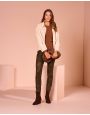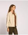 Il giacchino, realizzato in un morbido ecosuede, presenta un design moderno e funzionale. È caratterizzato da un classico colletto, ampi tasconi e pratici bottoni a pressione, che lo rendono un capo versatile e dall'aspetto contemporaneo.