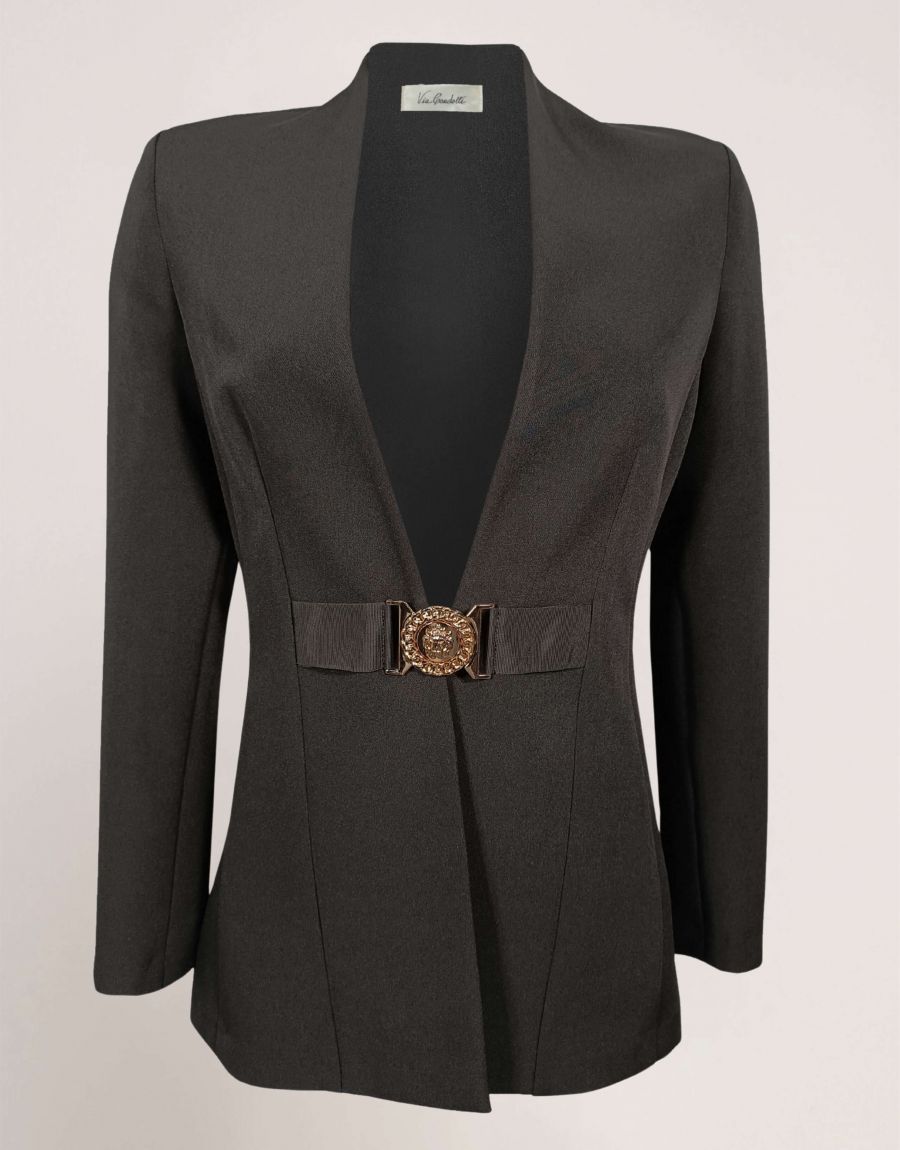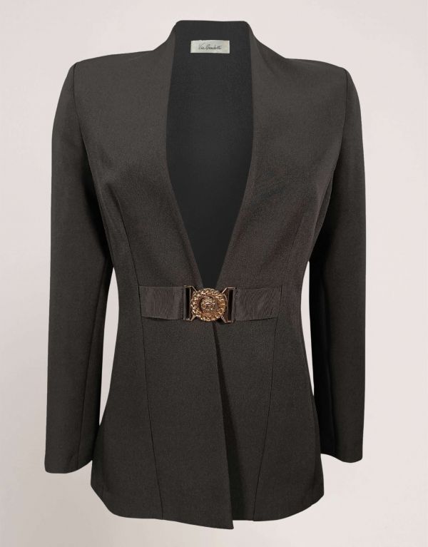 Giacca in bistretch con cinturina in canneté e fibbia apribile oro
