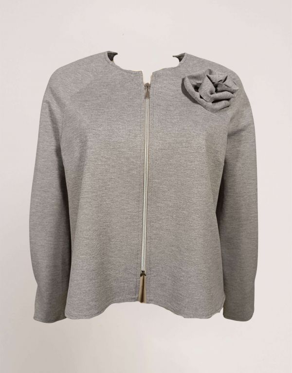 Giacca corta in punto Milano con zip e applicazione a fiore