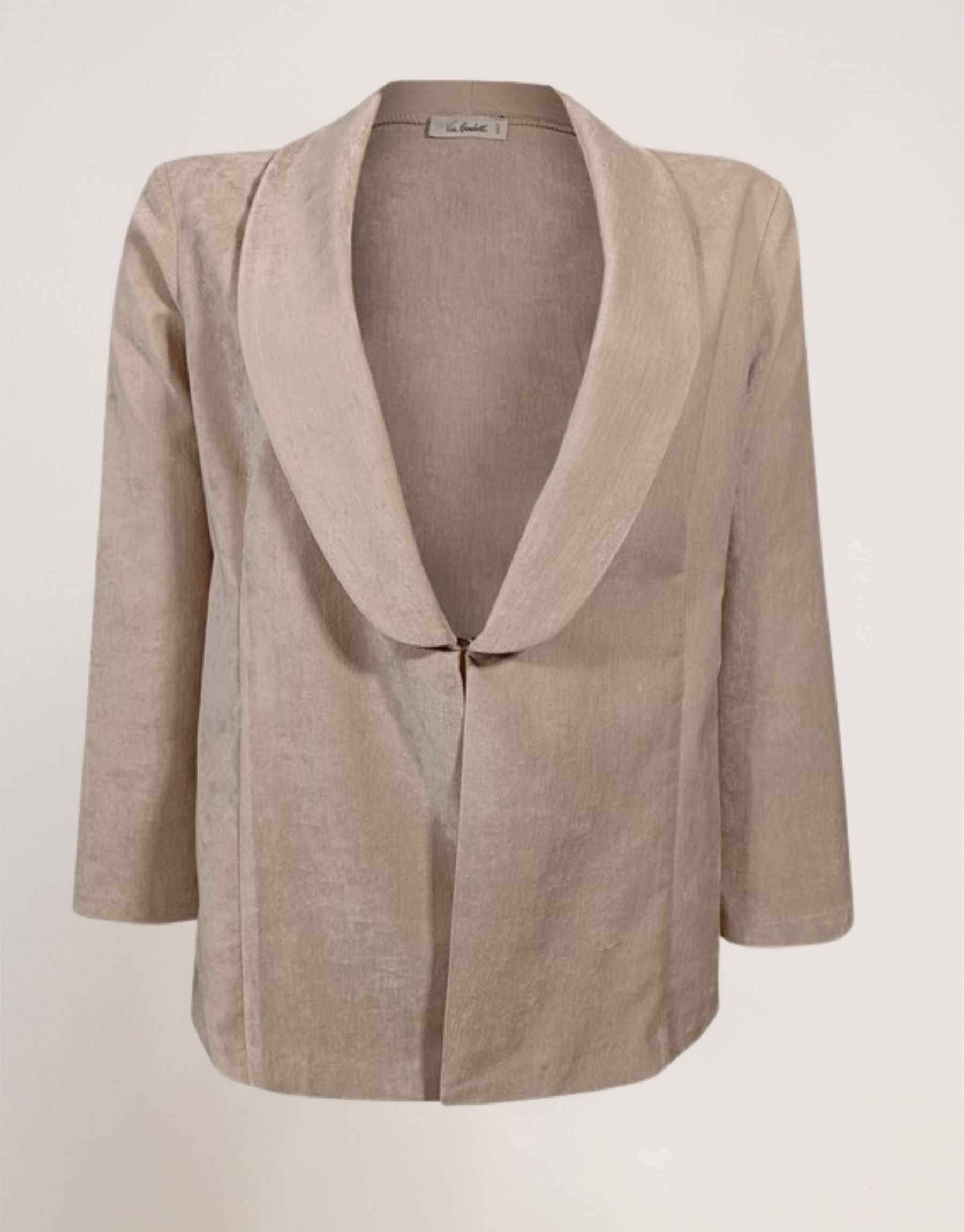 Questa giacca in velluto cattura l'attenzione con il suo sofisticato collo a scialle, offrendo un tocco di eleganza e raffinatezza, ed è dotata di una chiusura a gancio per un look pulito e sartoriale.