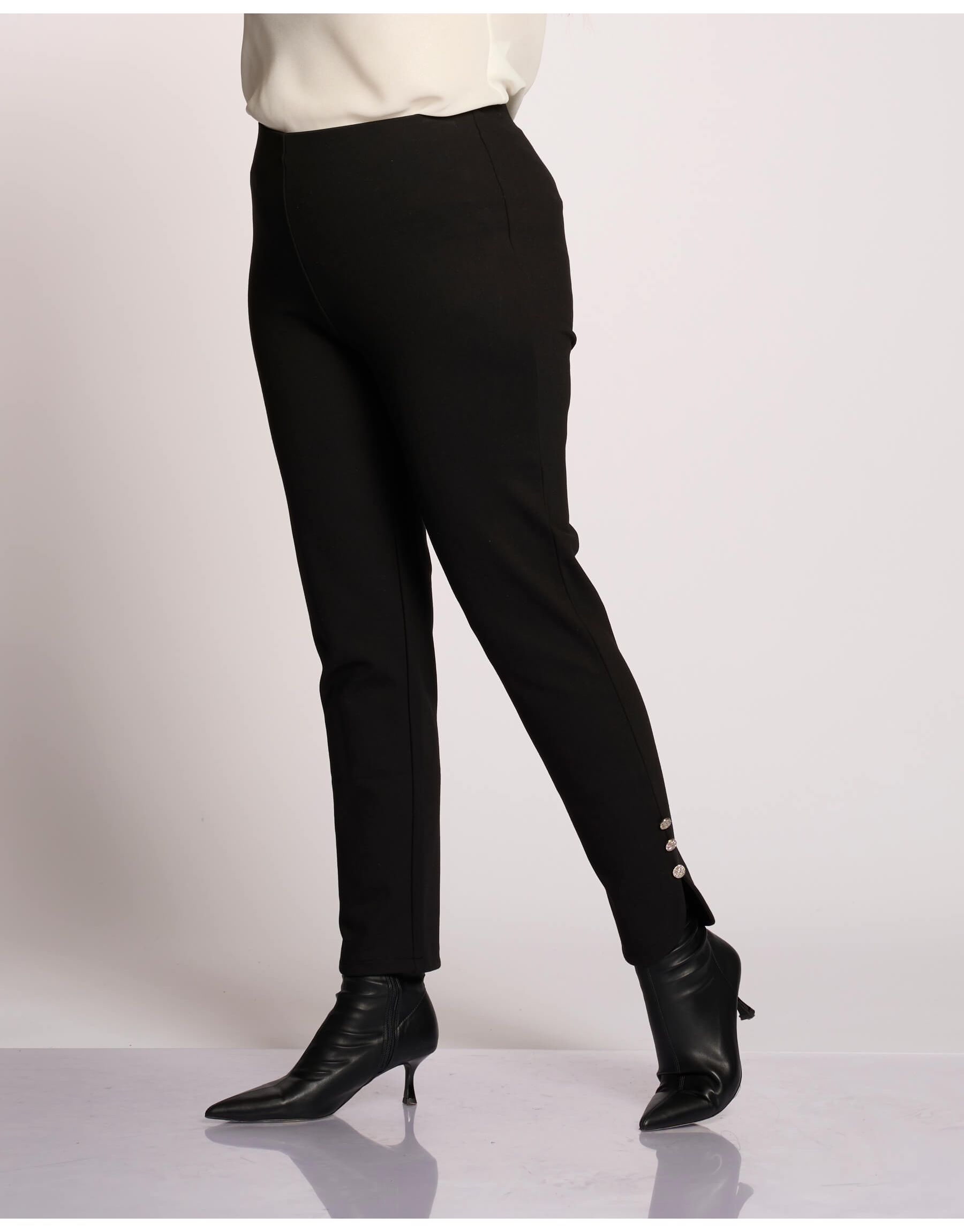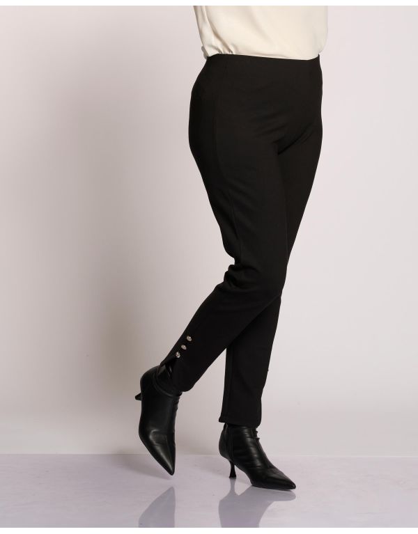 Leggings in punto Milano con spacco stondato al fondo e bottoni argento