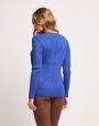 Maglia a coste con lurex e bottoni oro sullo scollo a V
