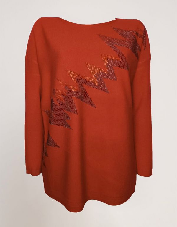 Maglia lunga con scollo a barca e zig-zag di strass bicolore