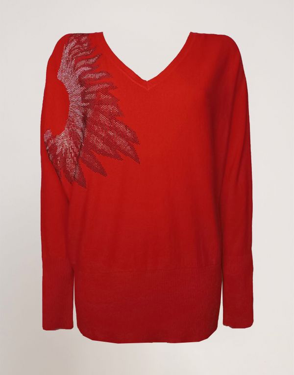 Maglia lunga con maniche a pipistrello e dettaglio di fiore di strass
