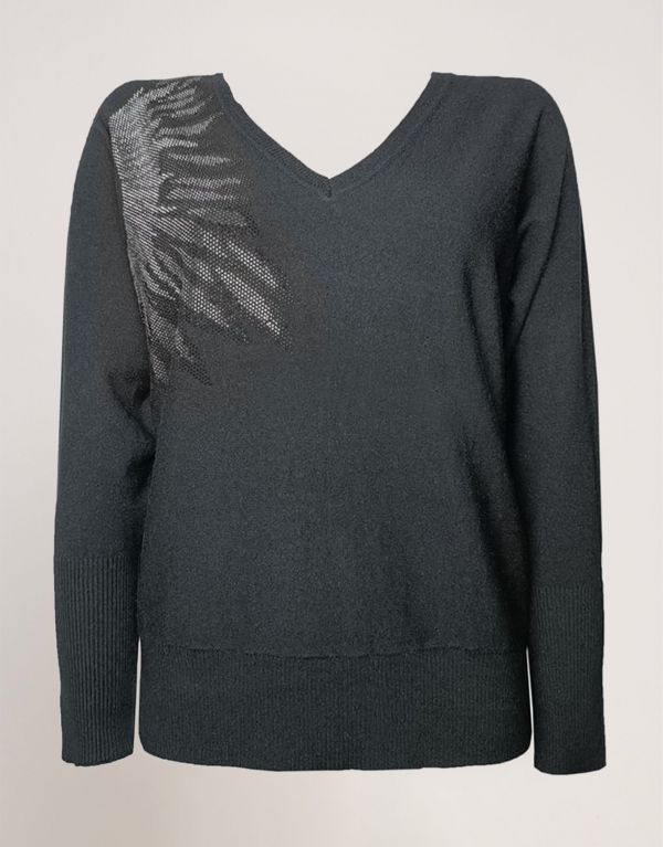 Maglia lunga con maniche a pipistrello e dettaglio di fiore di strass