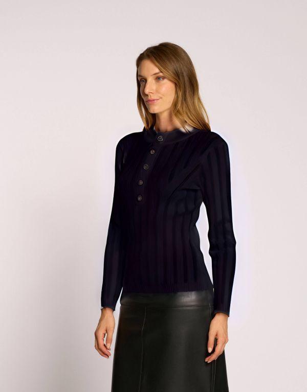 Maglia aderente con motivo a coste traforate e bottoni oro