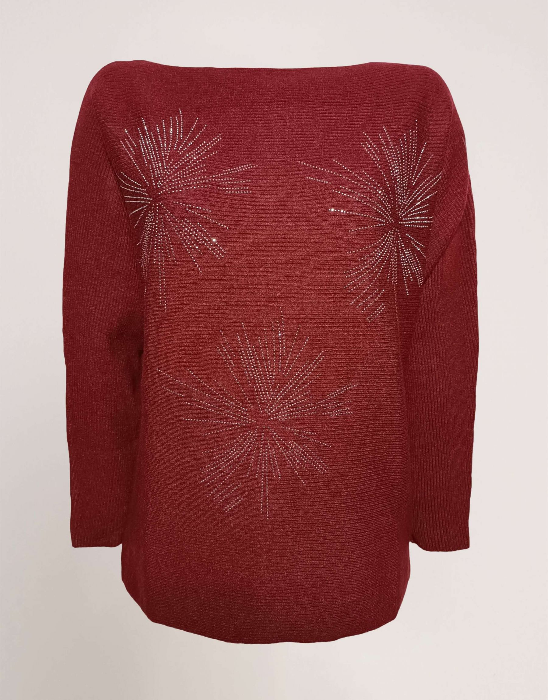Maglia a coste con maniche a pipistrello e strass argento