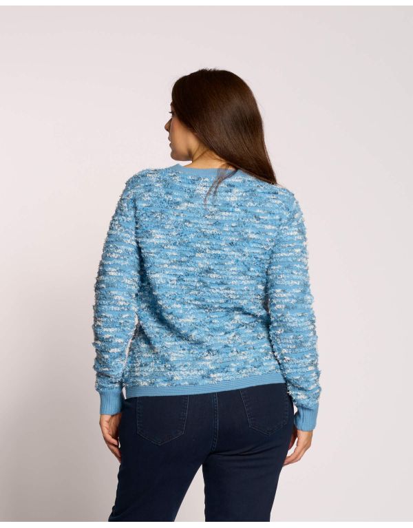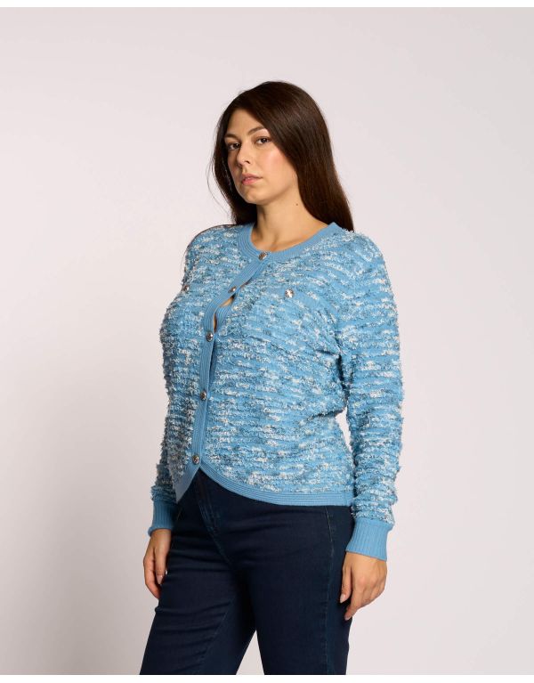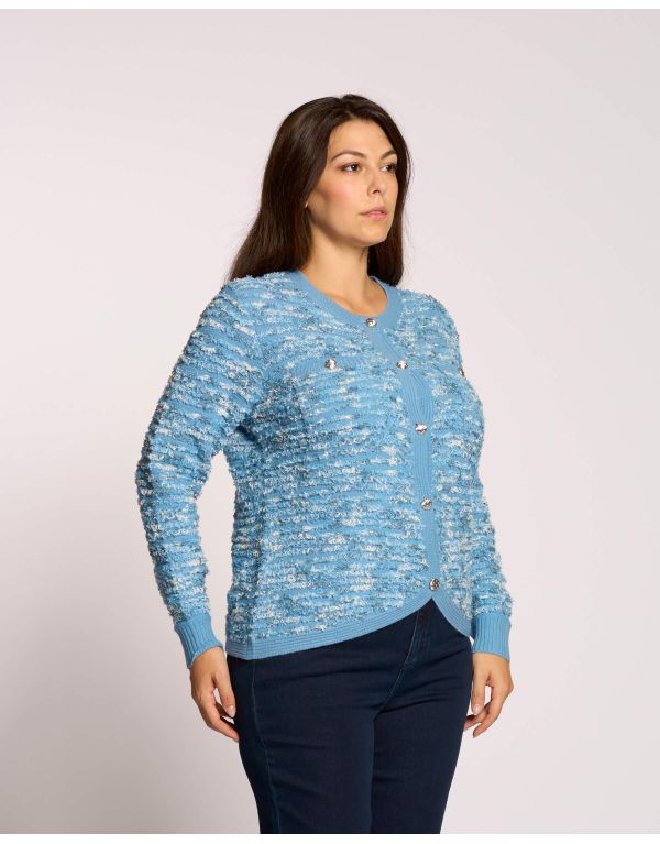 Golfino effetto bouclé con pattine e bottoni argento