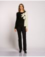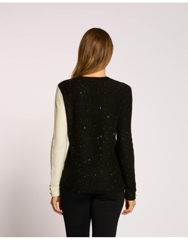 Maglia in filato con paillettes con intarsio a fiore e risvolto ai polsi con bottoni