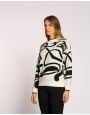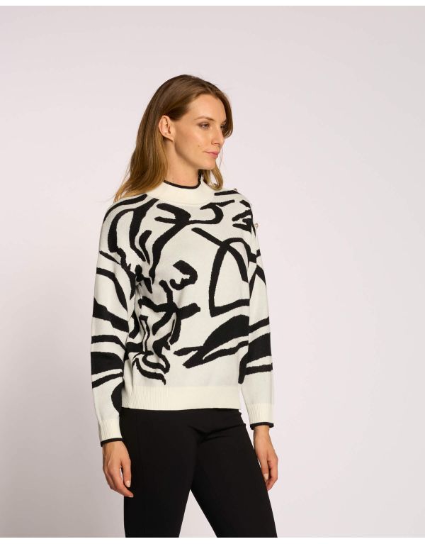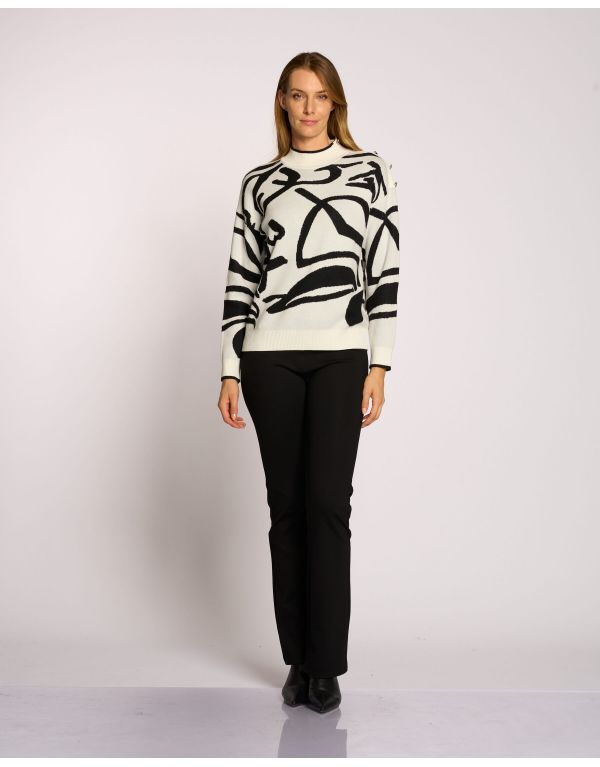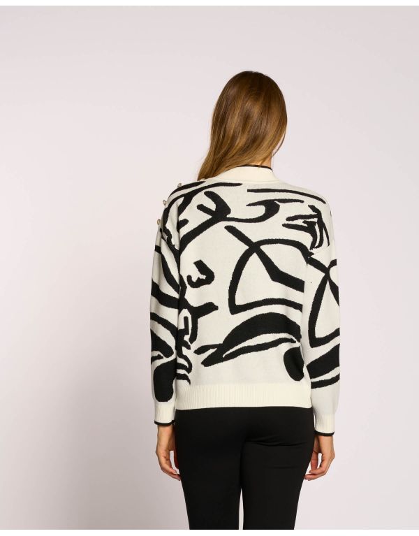 Maglia con disegno jacquard astratto e bottoni argento su una spalla