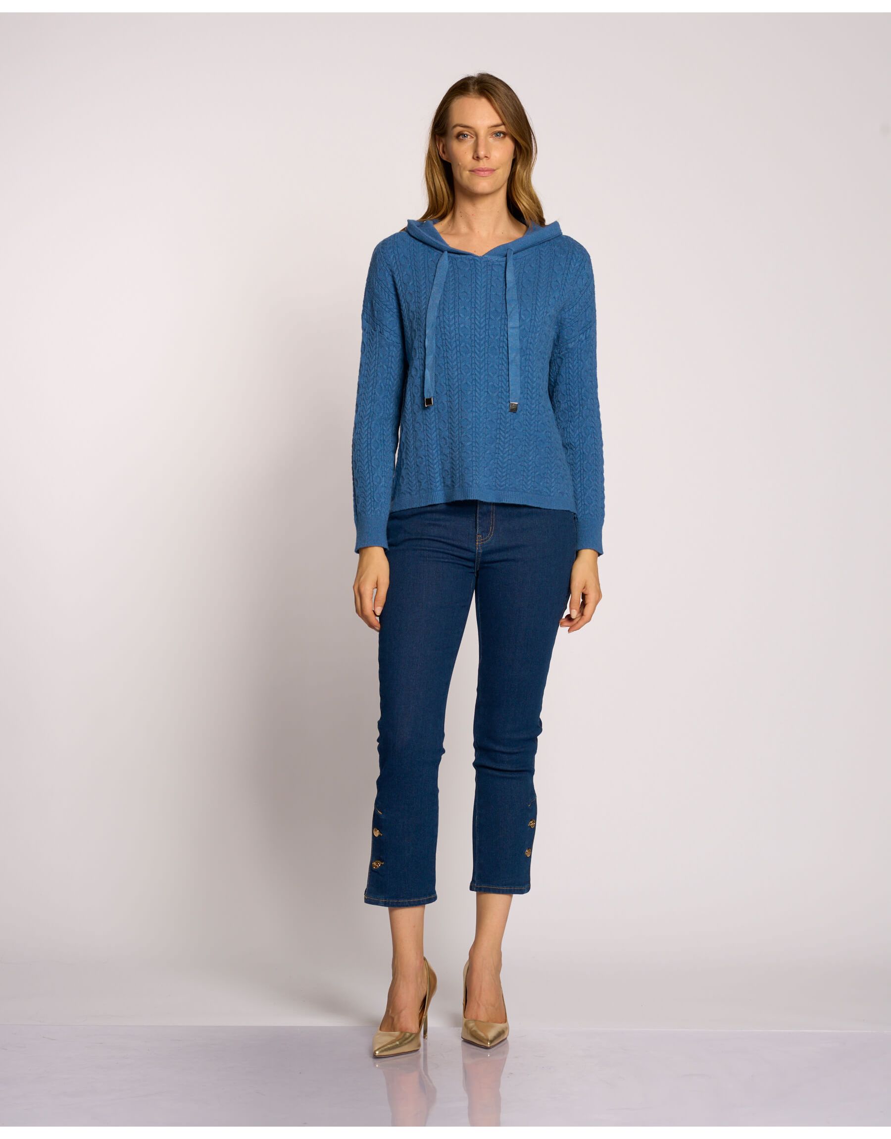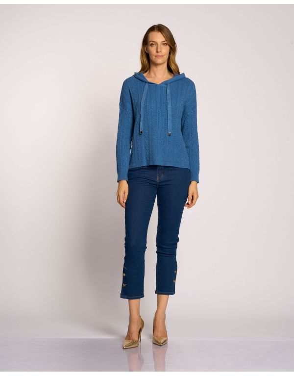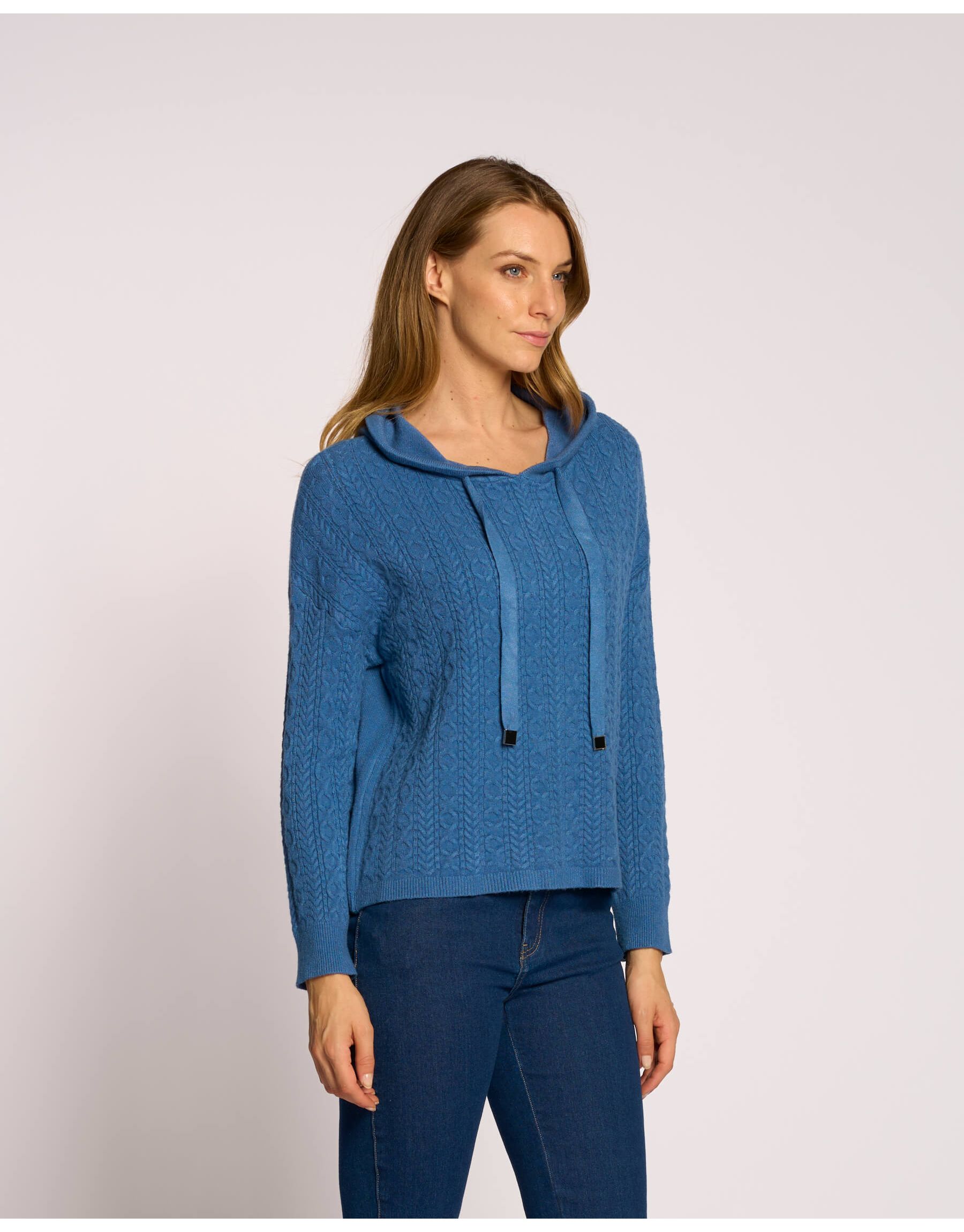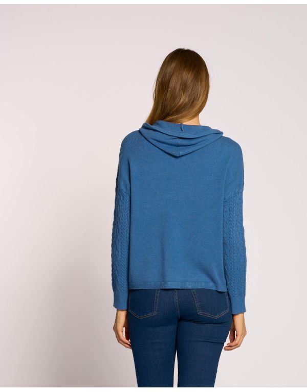 Maglia a scatola con lavorazione a trecce e coulisse sul cappuccio