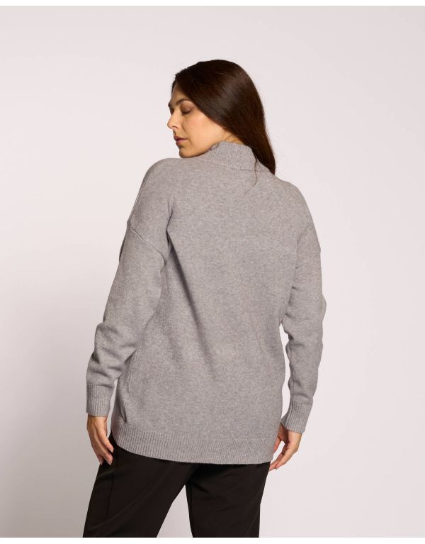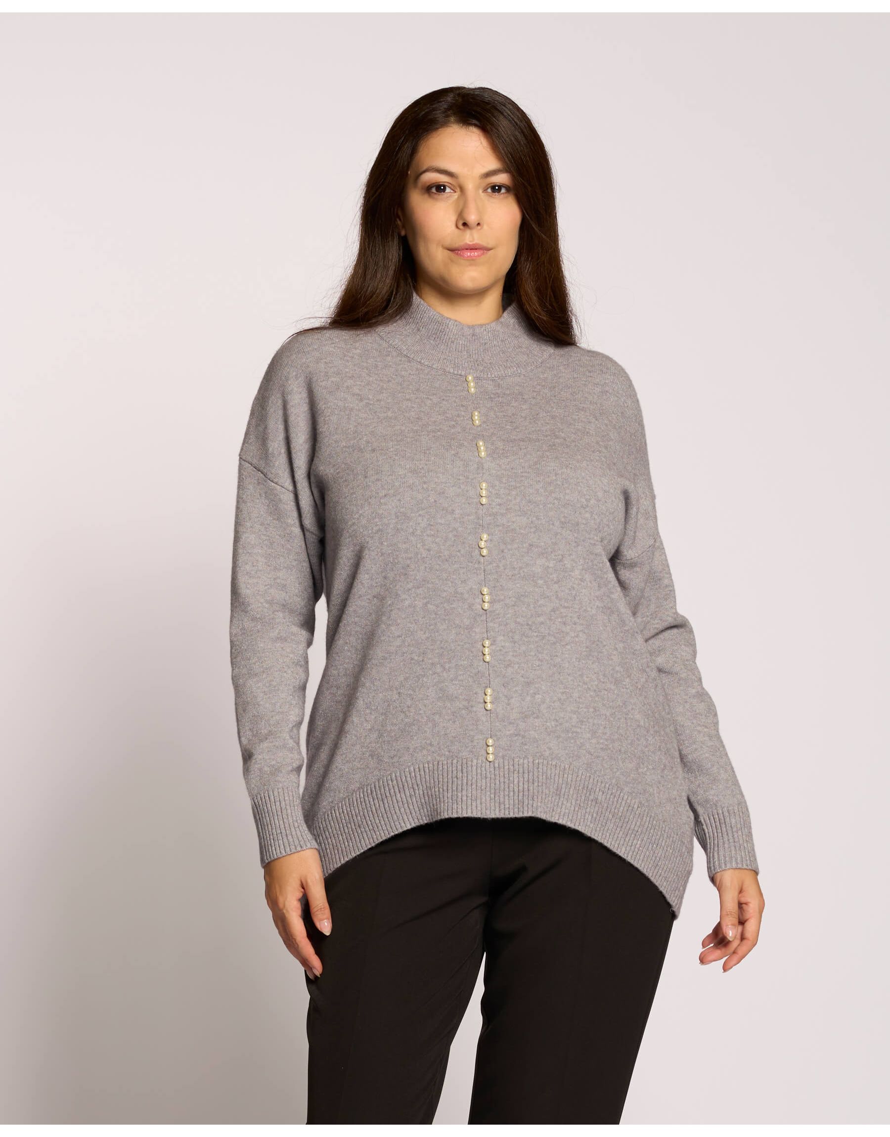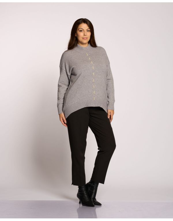 Maglia a collo alto con fondo stondato e riga di perle