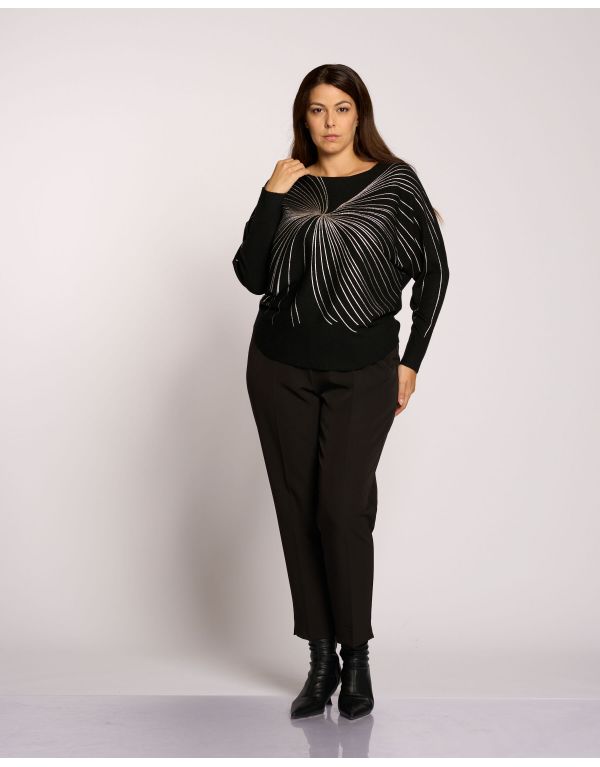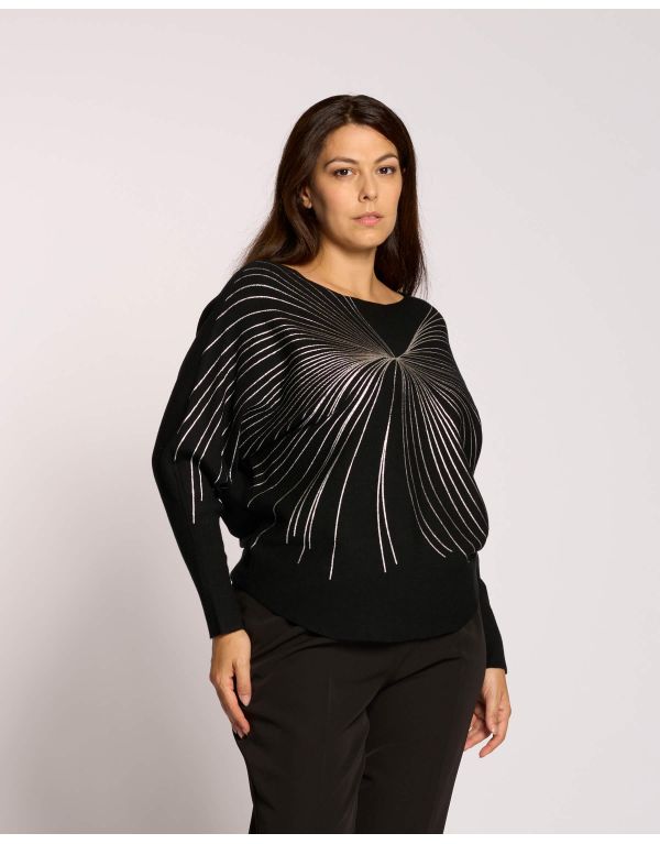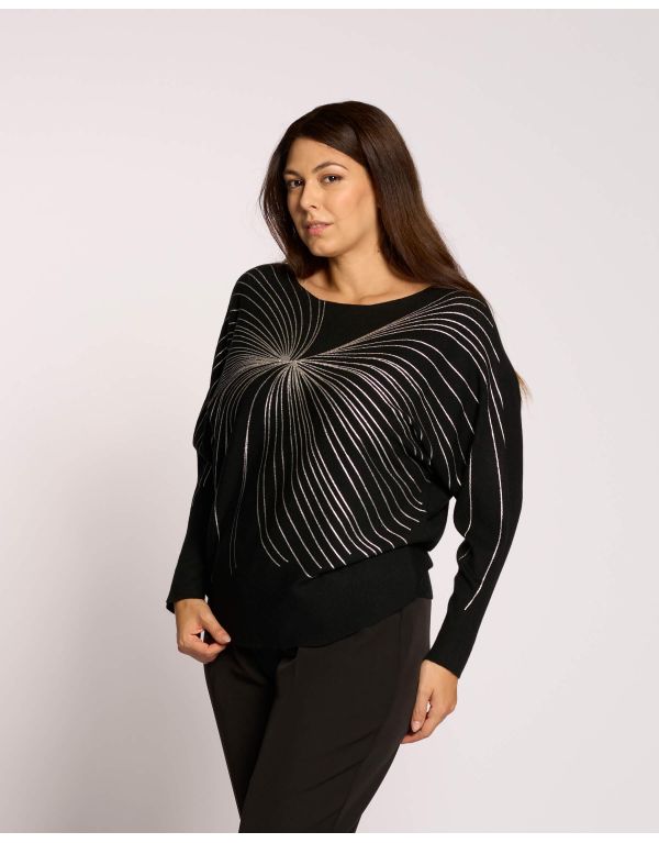 Questa maglia unisce comfort e tendenza grazie al suo design distintivo: le maniche a pipistrello offrono una vestibilità morbida e fluida, creando un volume moderno e rilassato. La stampa laminata aggiunge un tocco di lucentezza metallica e audace, trasformando un capo casual in un pezzo versatile e di carattere.