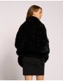 Mantella in ciniglia ricamata con paillettes e bordi in ecopelliccia