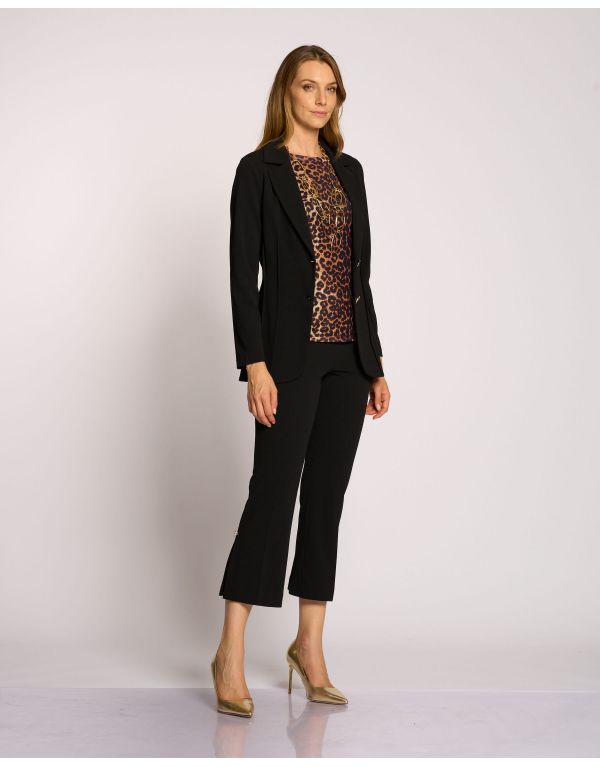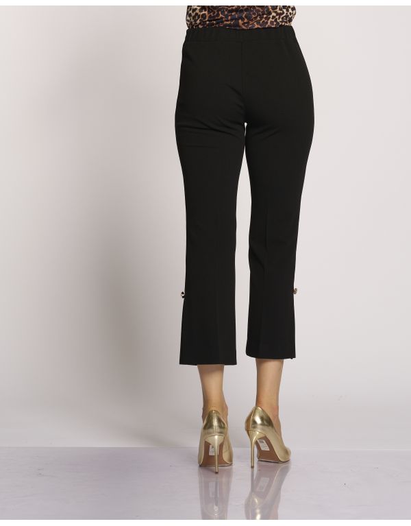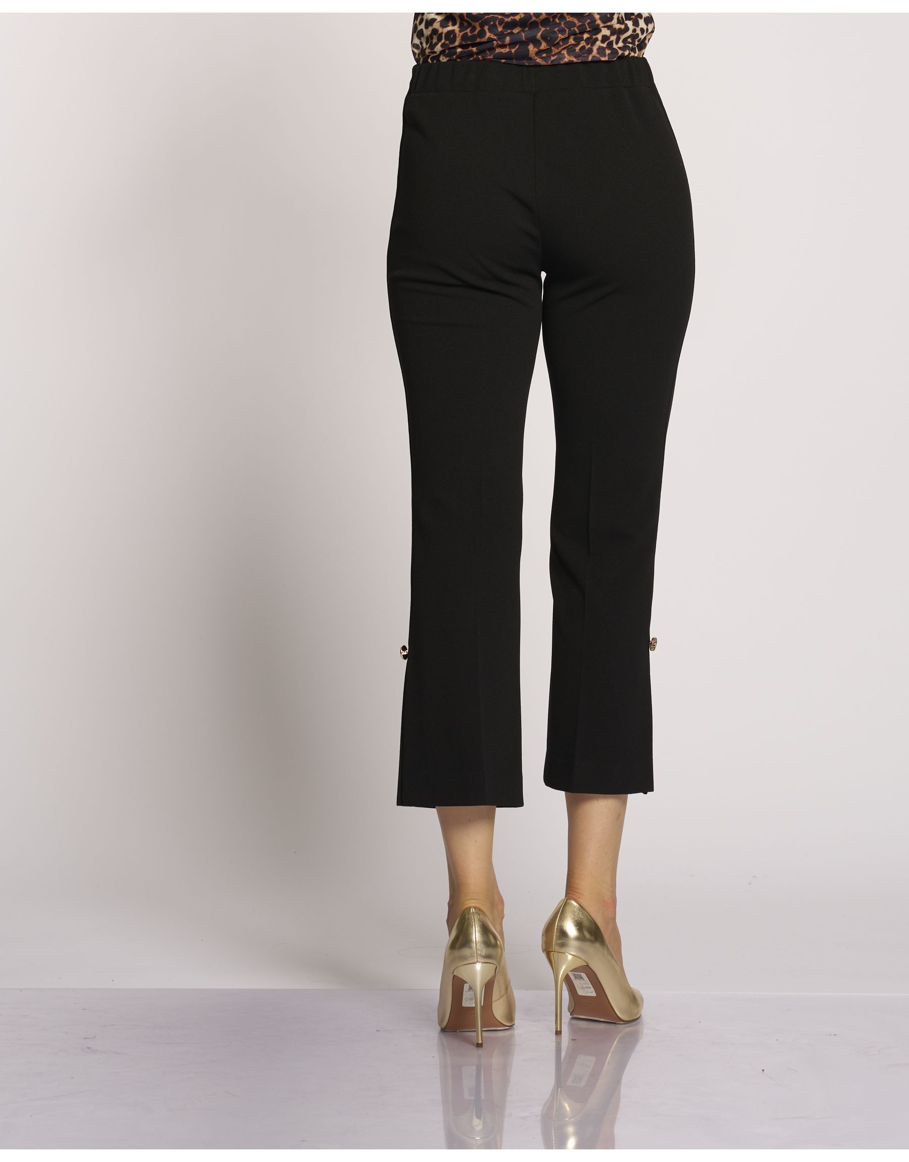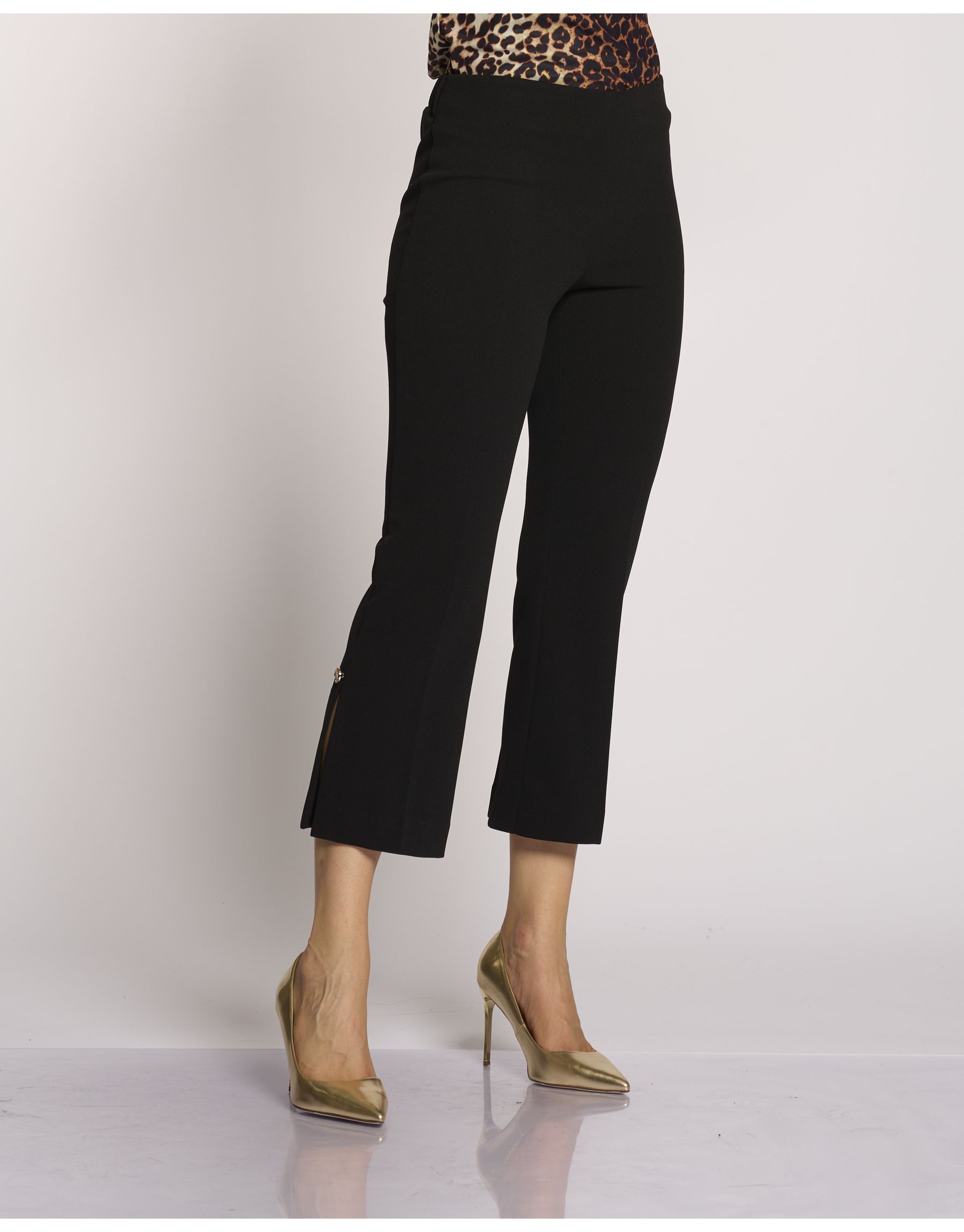 Pantalone in scuba crêpe a trombetta con cinturino elastico e spacchi laterali con bottone