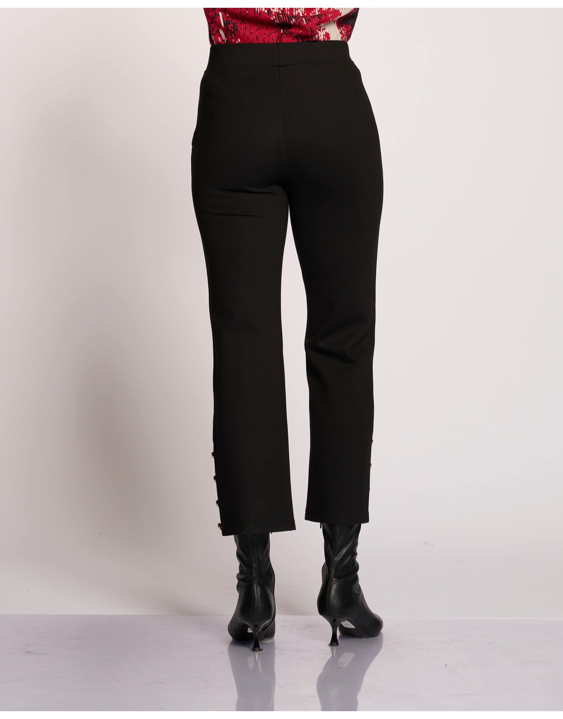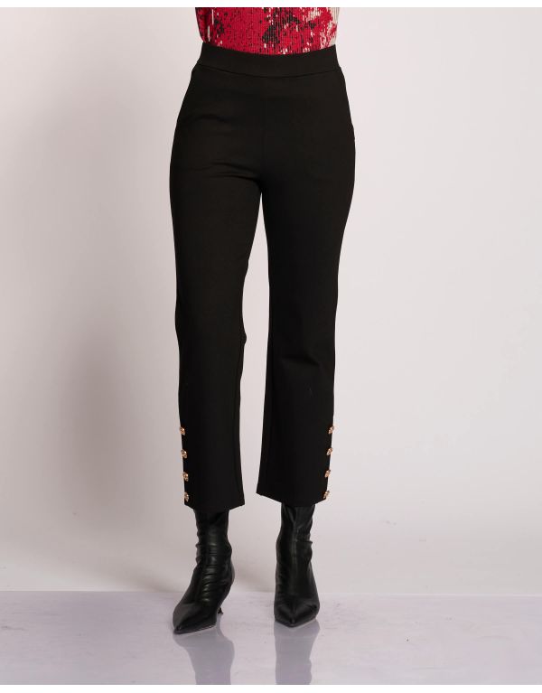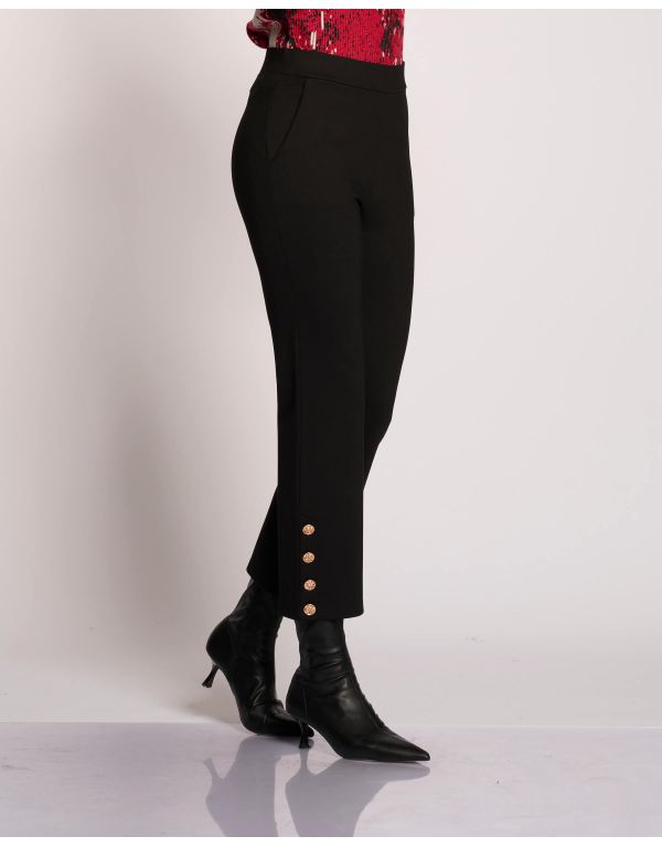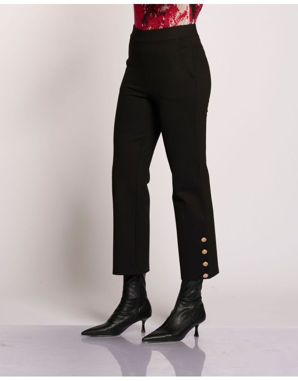 Pantalone cropped in punto Milano con bottoni oro al fondo