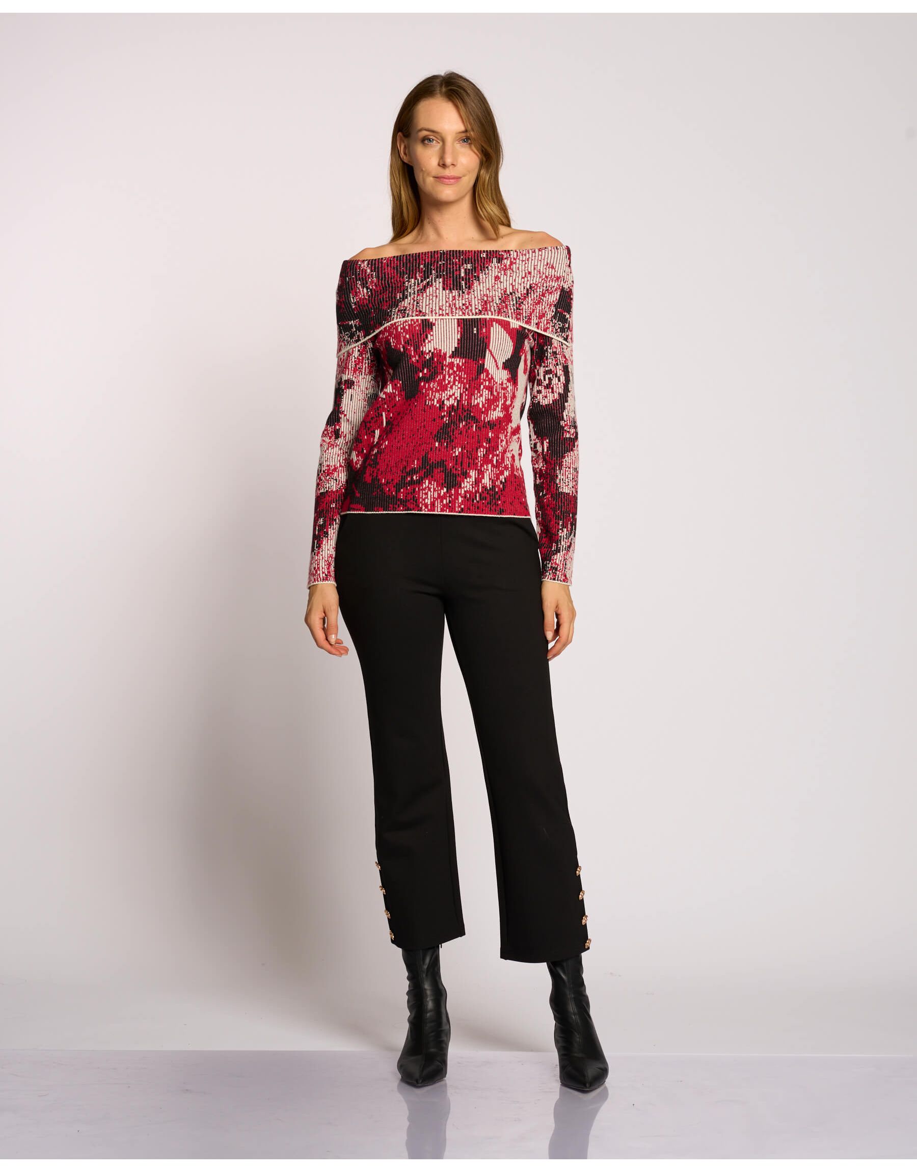 Questi pantaloni in punto Milano combinano eleganza e comfort. Sono caratterizzati da un taglio cropped e moderno che mette in risalto la caviglia. Un dettaglio chic sono i bottoni color oro applicati al fondo, che aggiungono un tocco di raffinatezza al capo. Perfetti per un look versatile, dall'ufficio all'aperitivo.