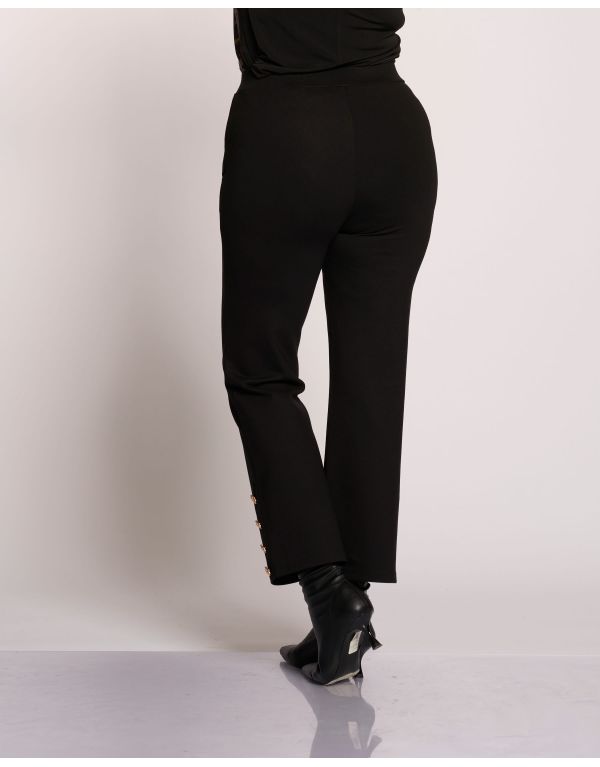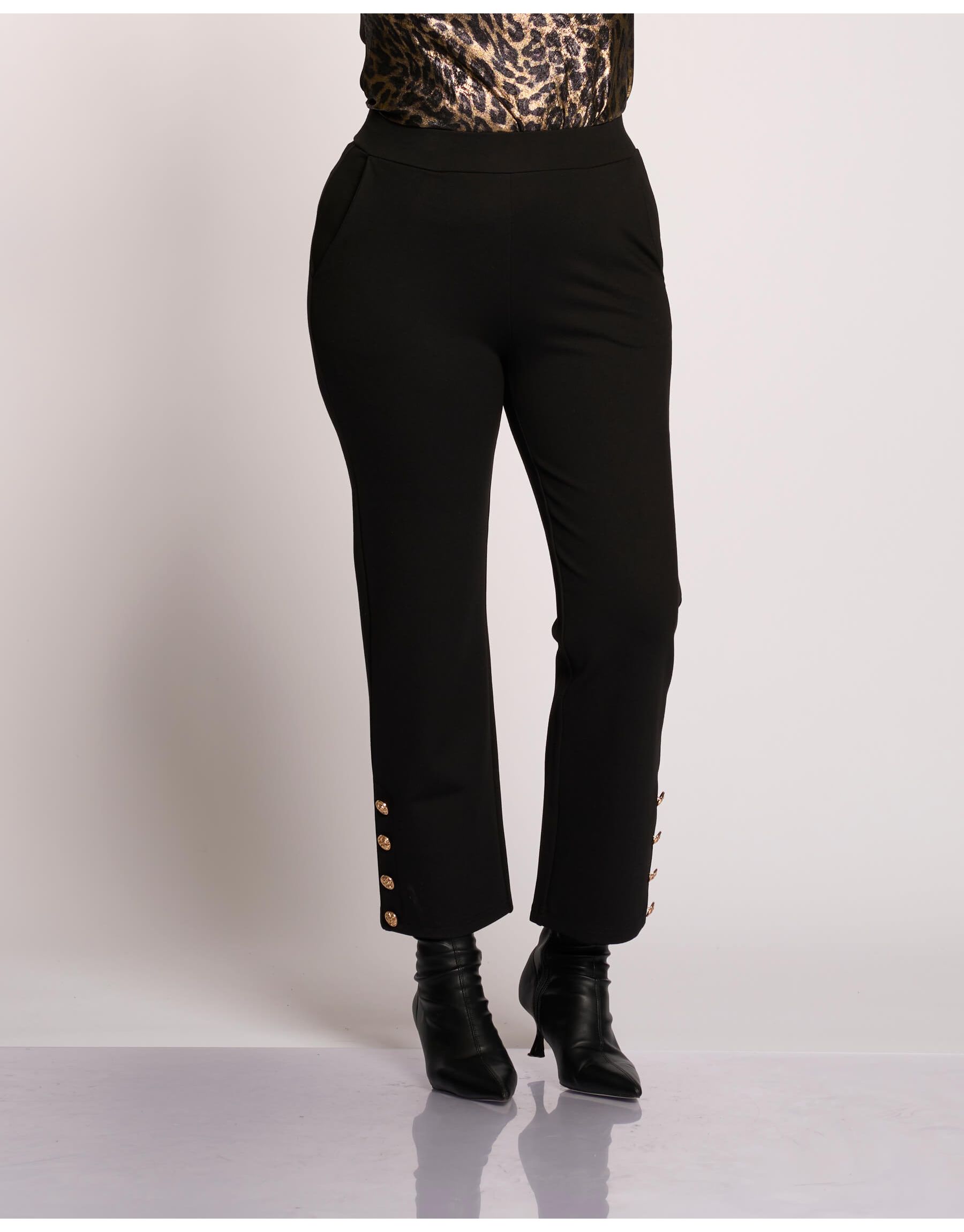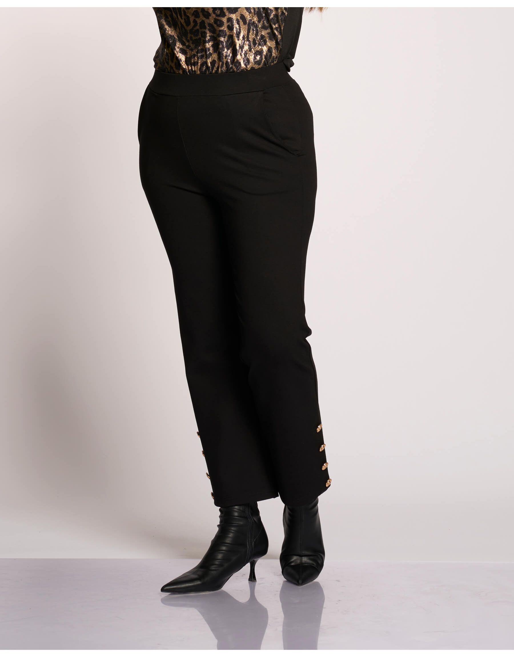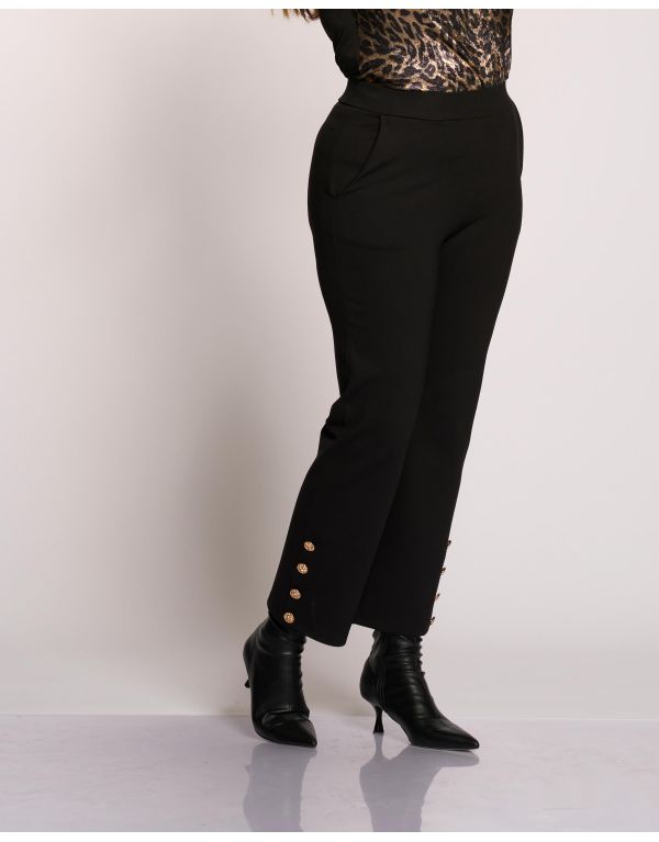 Pantalone cropped in punto Milano con bottoni oro al fondo