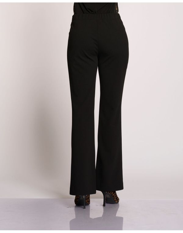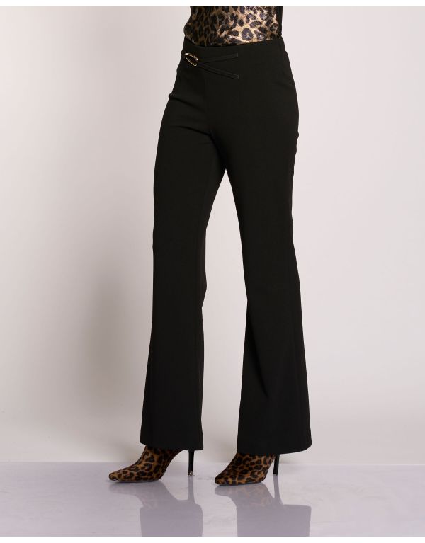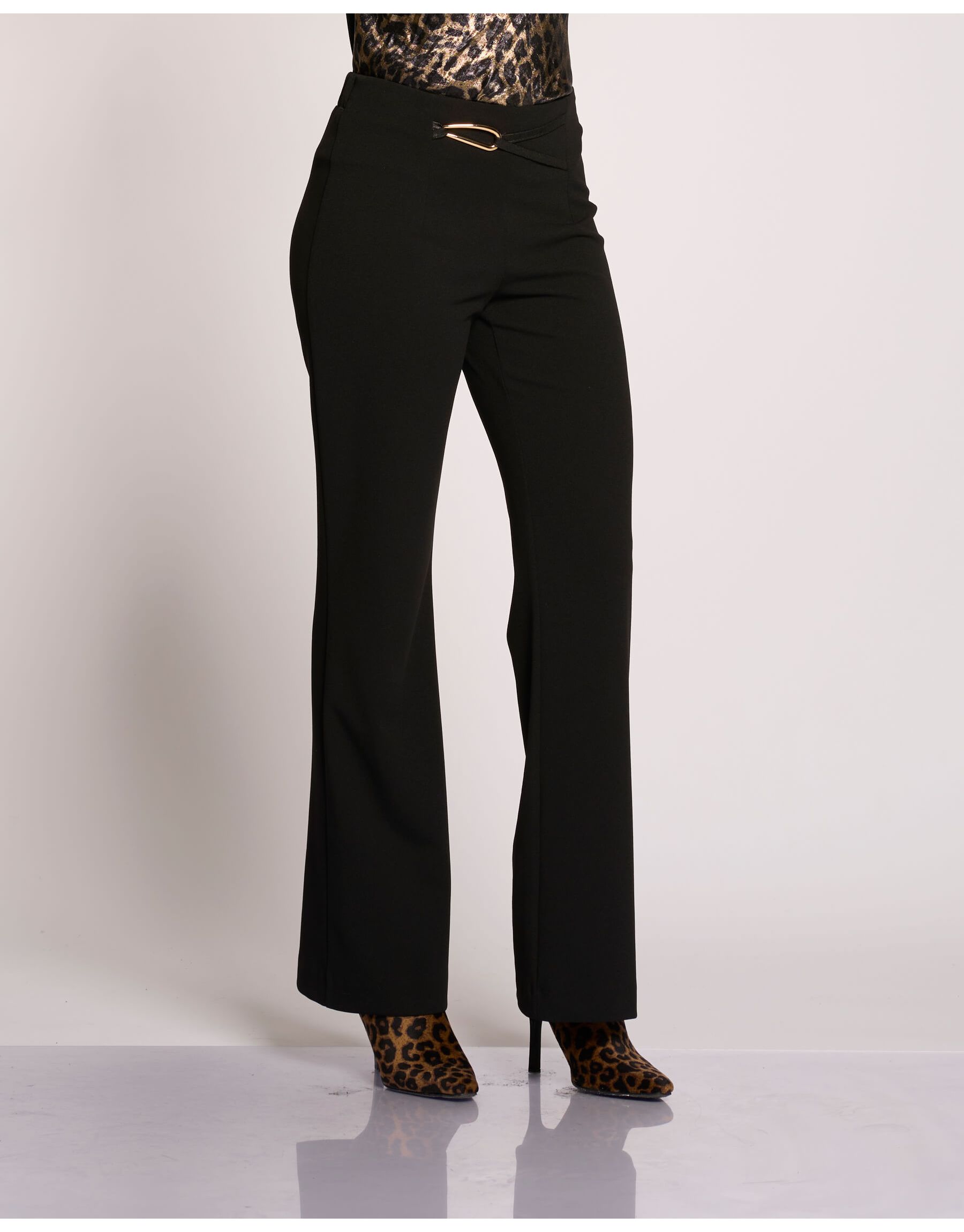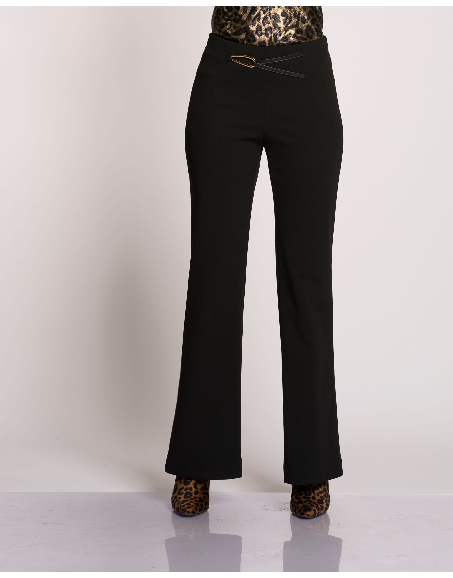 Pantalone in scuba crêpe a zampetta con motivo di cintura in scuba pelle e fibbia
