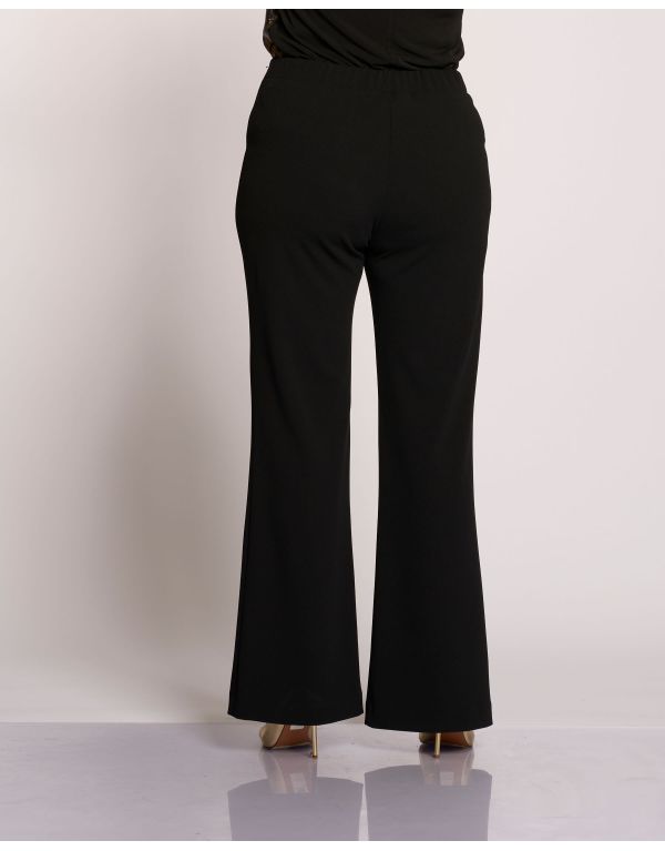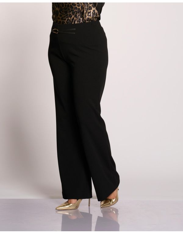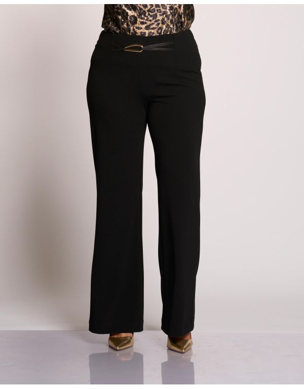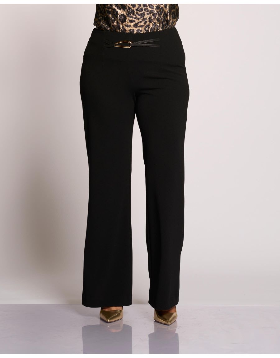 Pantalone in scuba crêpe a zampetta con motivo di cintura in scuba pelle e fibbia