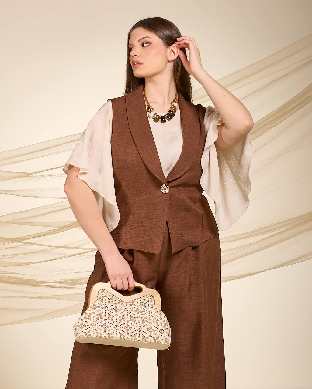 Borsa piccola in pizzo e manico in legno