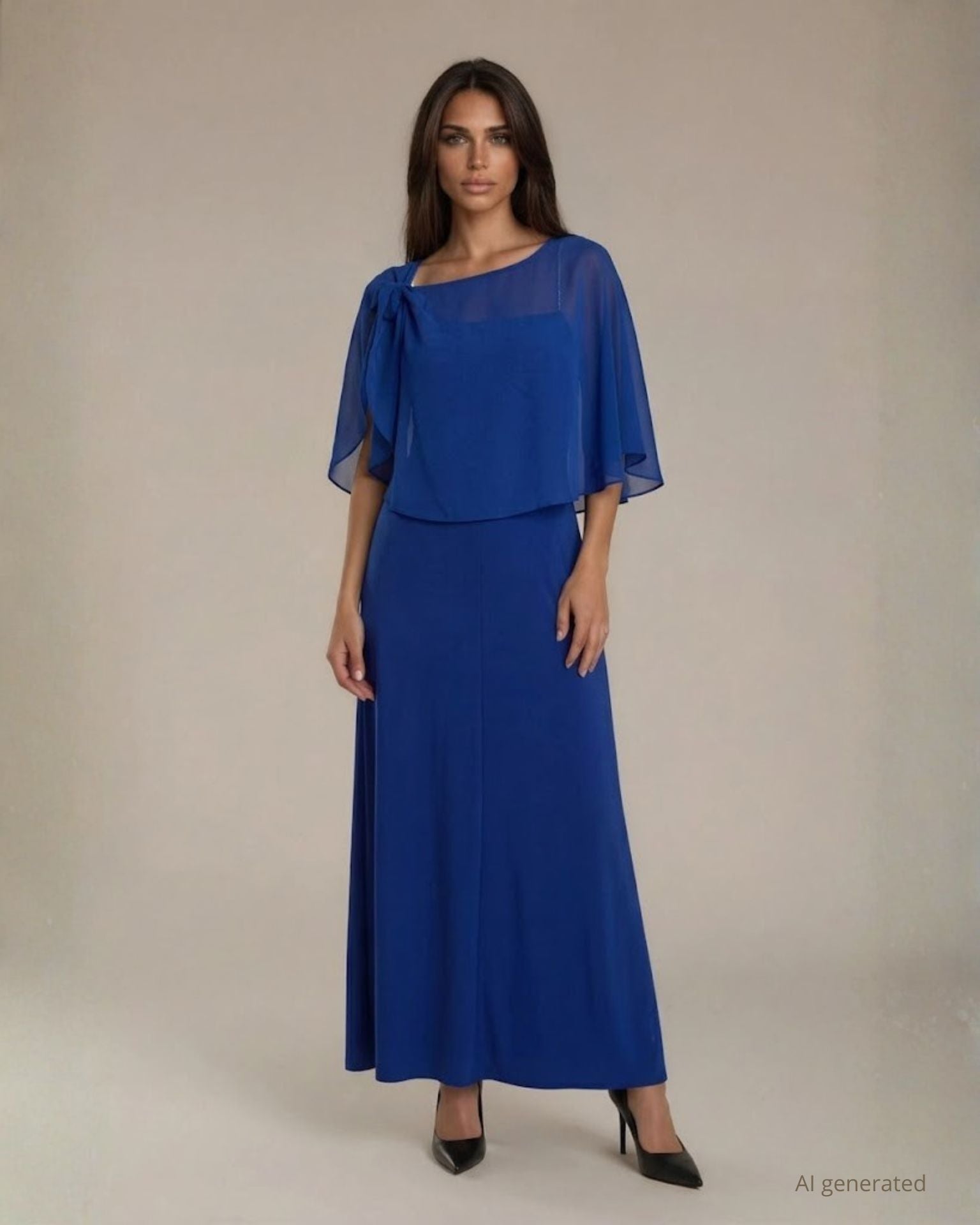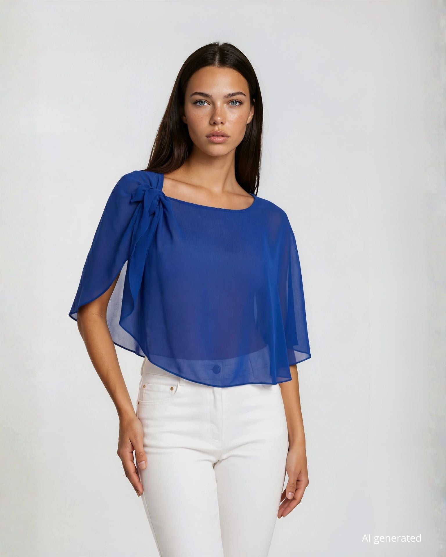 Mantellina corta in georgette royal con laccetto removibile