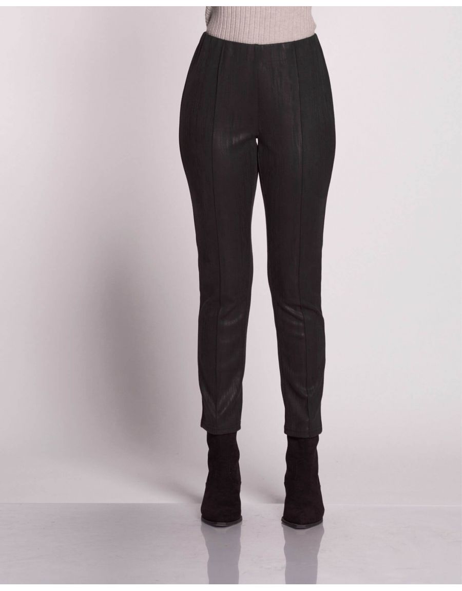 Questi pantaloni in ecosuede presentano un'affascinante lavorazione a effetto striato, arricchita da eleganti impunture che ne esaltano il design. Un capo che unisce la morbidezza del tessuto a un tocco di originalità, perfetto per un look ricercato e di tendenza.